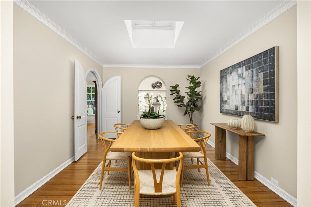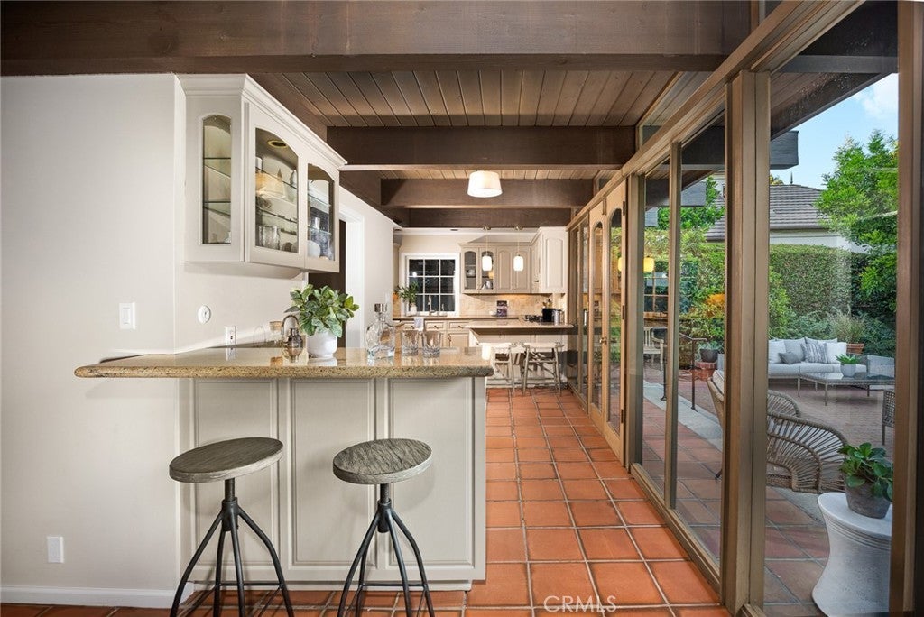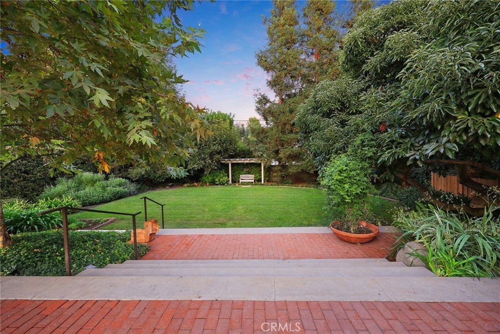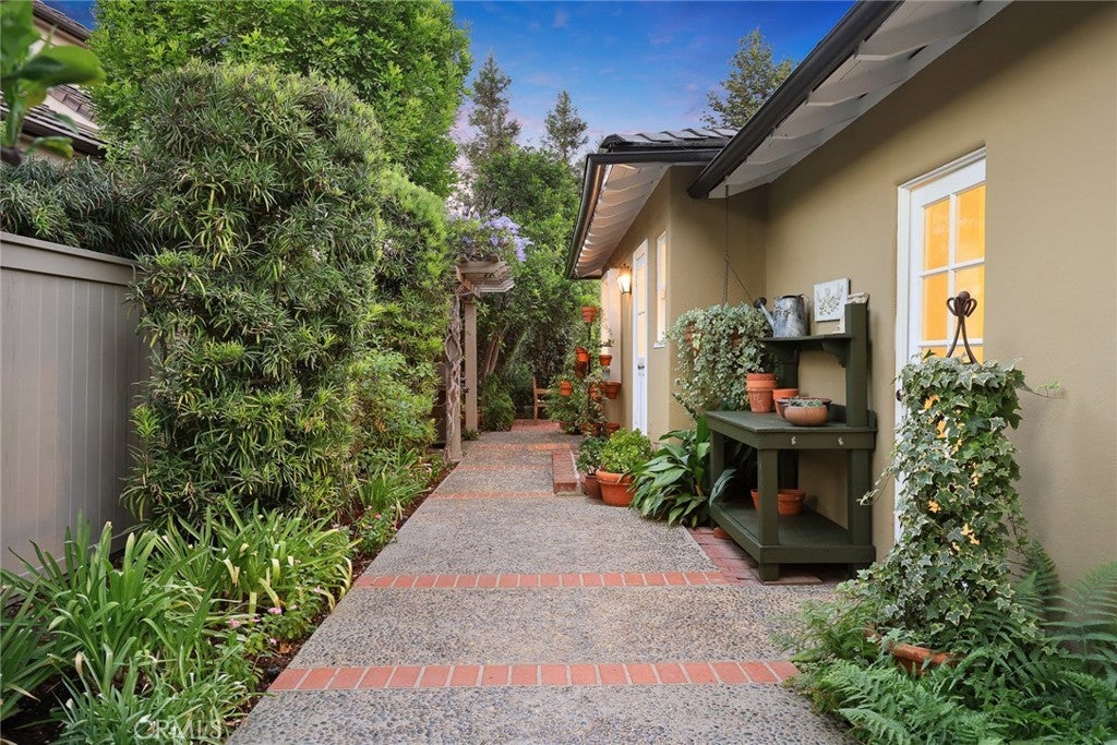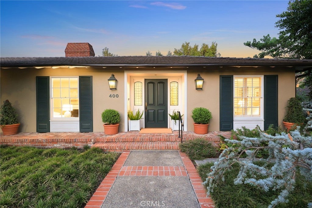 First time on the market in 65 years, move-in ready, single-story living. Located on one of the most desirable streets in the Lower Rancho neighborhood, directly behind the L.A. County Arboretum where majestic peacocks roam freely, this timeless ranch home offers the epitome of indoor/outdoor Southern California living. Originally the personal residence of nationally-honored Landscape Architect Bob Eriksson, FASLA, the property showcases thoughtfully designed gardens and elegant living spaces. Set back from the street and framed by mature trees, the home features a charming brick front porch, large double-hung windows, and custom shutters. Inside, the foyer with paneled door and leaded glass windows opens to a welcoming living room with fireplace, which flows seamlessly to the skylit formal dining room and expansive beamed family room. A wall of glass and arched French doors highlight garden views, extending to the breakfast room and kitchen. The kitchen and adjacent wet bar include custom cabinetry, stone counters, and garden vistas, with convenient access to the mud/laundry room. The bedroom wing offers 3 bedrooms and 3 full baths (2 en-suite). The spacious primary suite features a tray ceiling, sitting area, wood-paneled closets, and French doors opening to the garden. The second en-suite bedroom enjoys its own private deck, perfect for morning coffee or quiet retreat. The rear yard unfolds across two levels with brick patios, signature concrete steps, an 8-jet in-ground spa, hillside dining deck, and a curated collection of specimen trees including a grove of eight mature Redwoods, a producing Avocado, Japanese Maple, California Sycamore, Carrotwoods, and more. Beautifully maintained, park-like grounds, and sensitively updated with a new tile roof, refinished hardwood floors, fresh paint, and new carpet, this move-in ready home is a rare offering in a coveted location—perfect for everyday living and gracious entertaining.