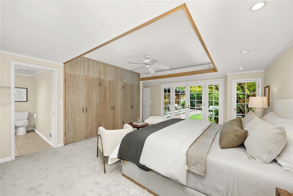 Beamed Ceilings, Wet Bar, Breakfast Bar, Built-in Features, Brick Walls, Ceiling Fan(s), Crown Molding, Separate/Formal Dining Room, Granite Counters, Open Floorplan, Recessed Lighting, Unfurnished, Bar, All Bedrooms Down, Bedroom on Main Level, Main Level Primary, Walk-In Closet(s)