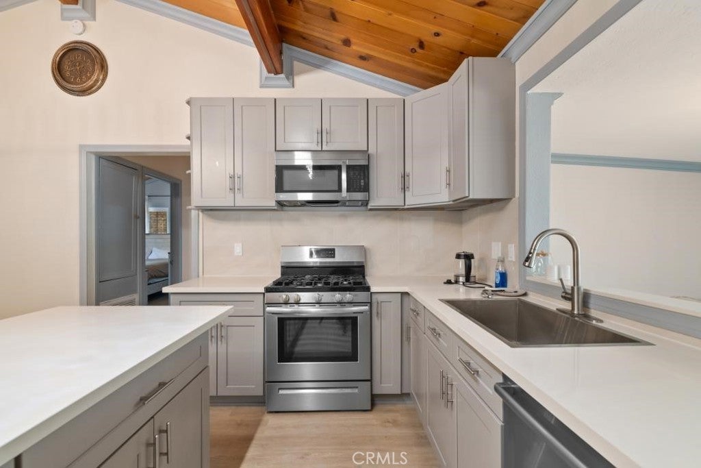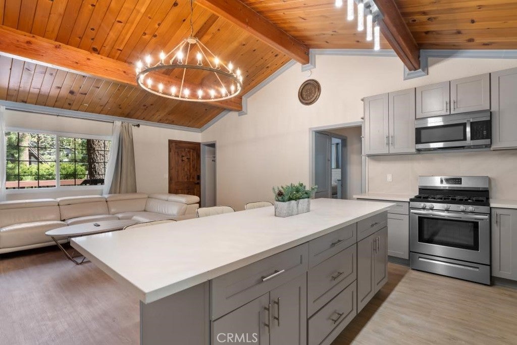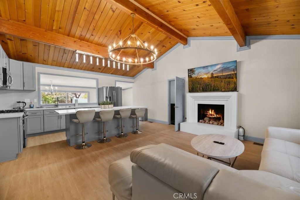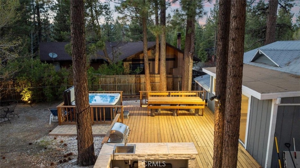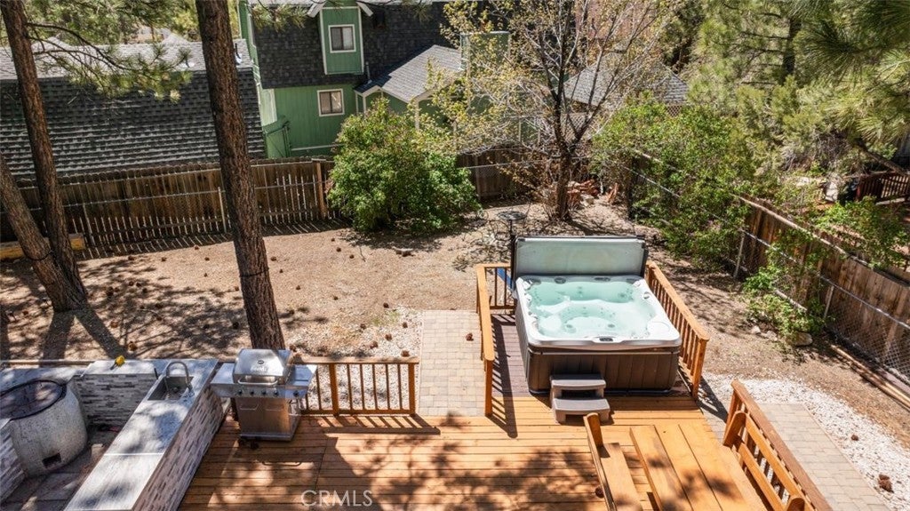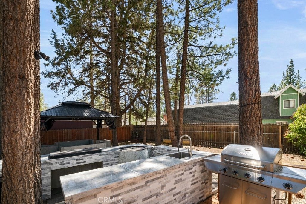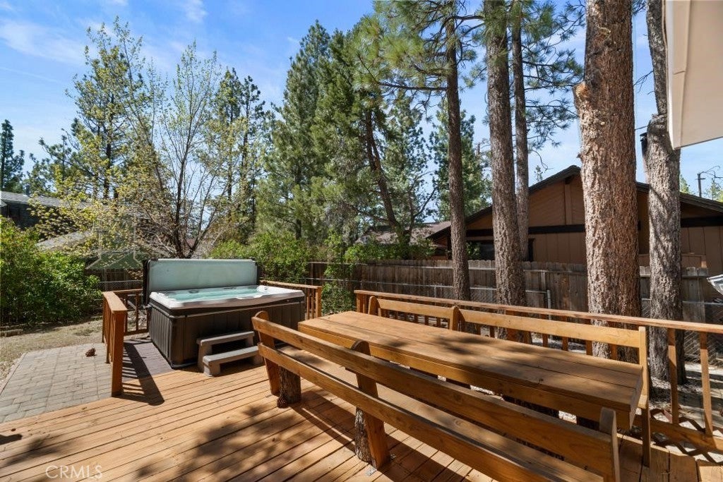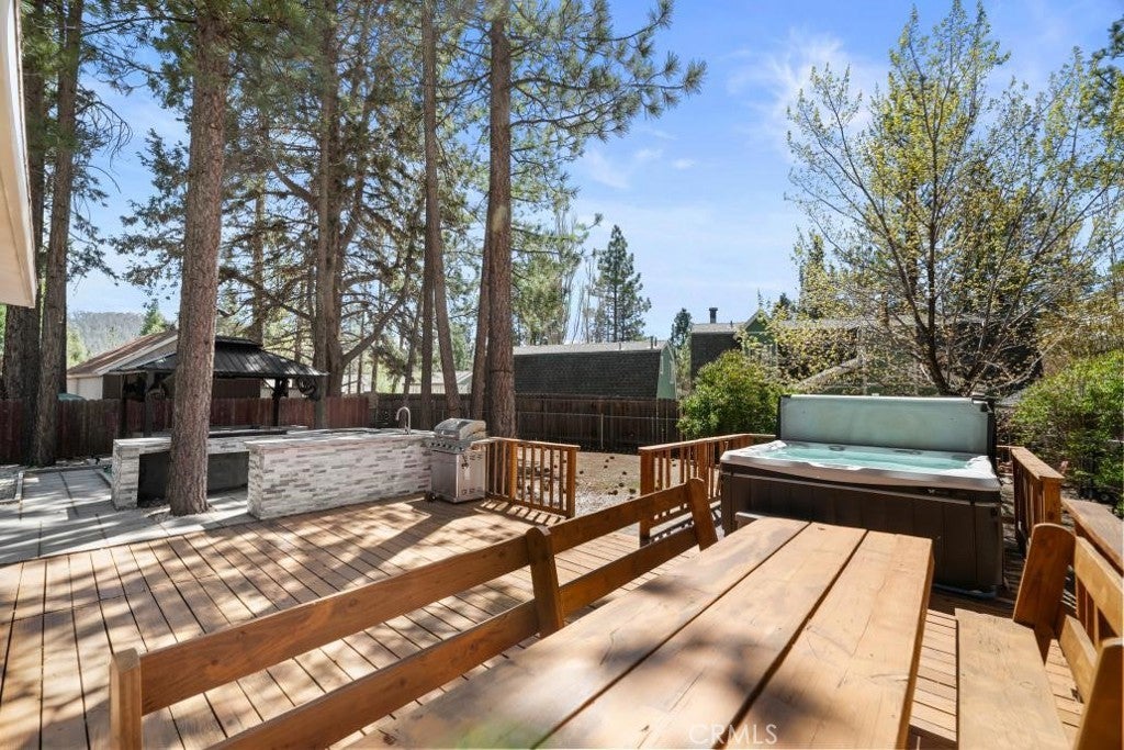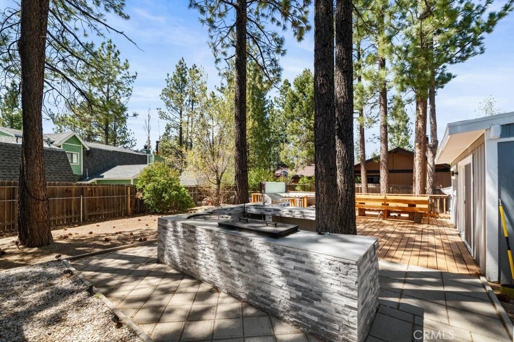 Are you looking for a place that truly feels like a getaway? This brand-new kitchen and the stunning renovations throughout the home make it perfect for anyone who enjoys modern comforts. The backyard features an above-ground jacuzzi, a brand-new outdoor kitchen, and a cozy fire pit with seating under the gazebo—ideal for entertaining or simply unwinding year-round, not just in winter! Bonus Garage Room! 5 Car parking spaces/RV Parking! Nestled in the tranquil Fox Farm neighborhood, this beautiful mountain home is just minutes away from all that Big Bear has to offer. You'll find shopping, dining, the lake, and resorts nearby. The open floor plan creates an ideal space for hosting gatherings with friends and family or enjoying a cozy night in by the fireplace with loved ones. Imagine sipping your morning coffee on the front porch while soaking in views of Bear Mountain Resort, or relaxing in the afternoons on your back deck, listening to the gentle rustle of the pines. This home boasts special features like a formal dining room, and a fully fenced yard for privacy and enjoyable stays. Plus, the large, covered carport adds extra convenience. Whether you're considering a primary residence or a rental income opportunity, this cabin is ready for you to create lasting memories. Don’t miss out—this gem won’t last long! If you have any questions or would like to learn more about the area, please feel free to reach out.