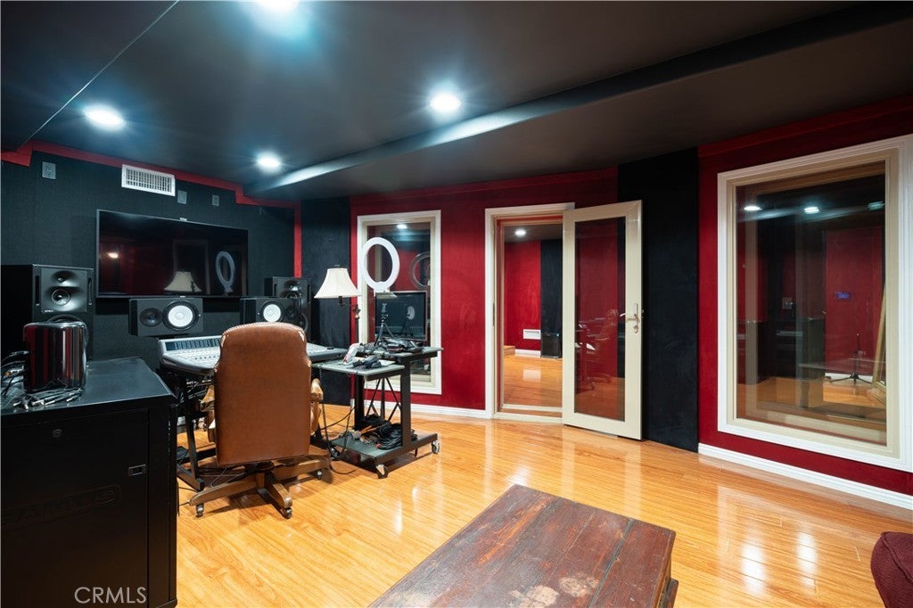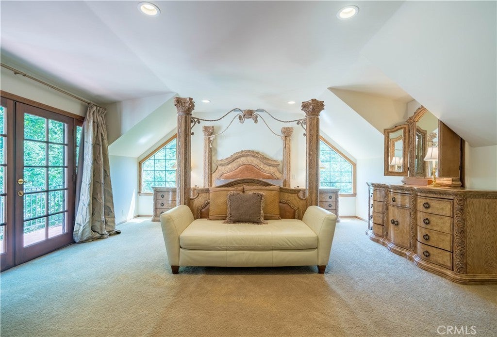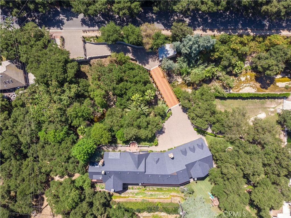 A show stopping blend of old-warm charm and grandeur, this remarkable English Tudor home sits on an impressive 1.6 acres and 8,533 sq ft of living space within the prestigious and private La Canada Flintridge area. Tucked away from the road for ultimate privacy, this home can be enjoyed in solitude with a private gate that opens to a private driveway. Cross the newly updated wooden bridge and take in the sounds of the natural creek and park-like grounds that surround the home. Enter the front door and be welcomed by the stately foyer which opens to the grand Staircase and soaring ceilings. Host intimate dinners in the adjacent Dining Room. Chef's kitchen with top-of-the-line appliances and oversized Island is perfect for an amazing culinary experience. All ensuite bedrooms are spacious and have access to their own balconies throughout the home. Primary suite boasts an opulent sitting area, large walk-in closet, and fabulous master bathroom with dual vanities, rainfall shower, and tub. Home office/library is cozy with its own fireplace. Additional den is versatile and can be used as another bedroom or office space. Upstairs also hosts the incredibly spacious Game Room with full bar and tons of room for activities and lounging. The lower floor is designed as a hidden getaway with sound-proof movie theater, fully equipped with reclining leather seats, projector, and surround sound system so you never have to go to the movies. Record and produce your own music in the recording studio downstairs with its own control and live rooms. Get your workout in with the gym or dance studio, which can be converted to another space as well. An elevator allows for easy travel amongst the three floors. Tons of outdoor space that can be used for a tennis court, basketball court, gardens, or events. This extraordinary and rare estate is both a timeless beauty and an entertainer's dream.