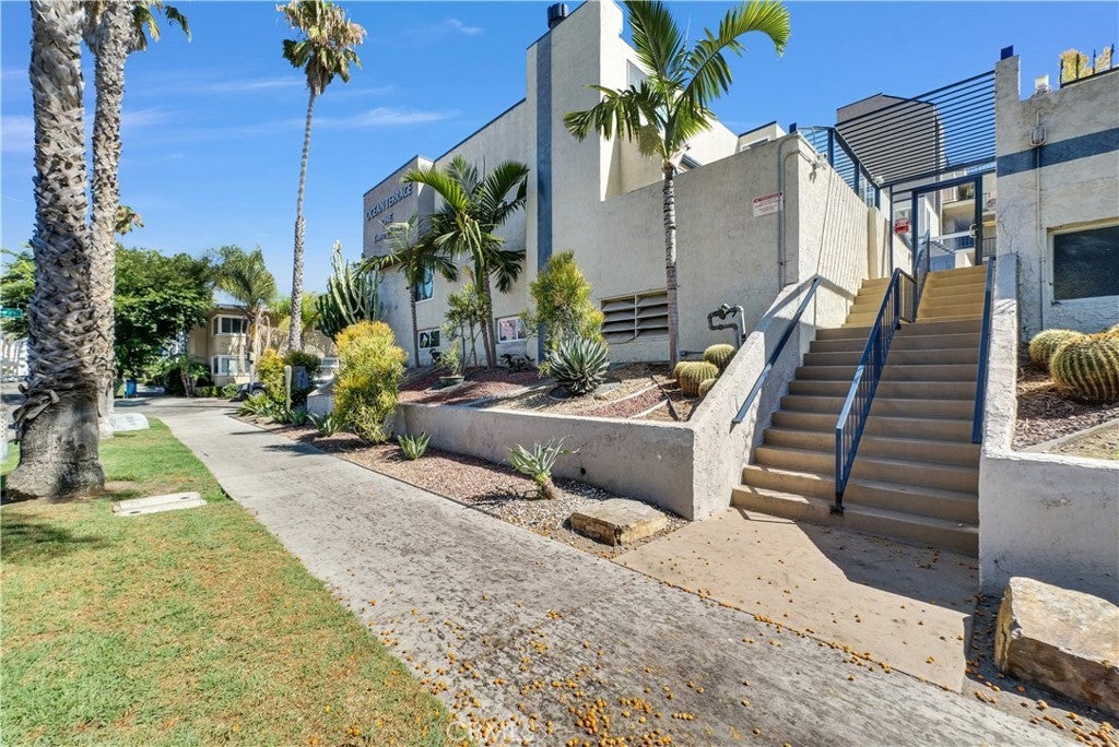 Beautifully updated 2 bedroom 2 bath ground floor end unit beachfront condo. This immaculate and serene home is filled with natural light and offers delightful ocean views from the living area and primary bedroom.. Beach access is just over the balcony. The remodeled kitchen features upgraded appliances including washer and dryer. The home has newer flooring and recessed lighting. Residents enjoy amenities including a rooftop deck, pool and jacuzzi, clubhouse, and sauna creating the perfect blend of relaxation and comfort in an impressive location.