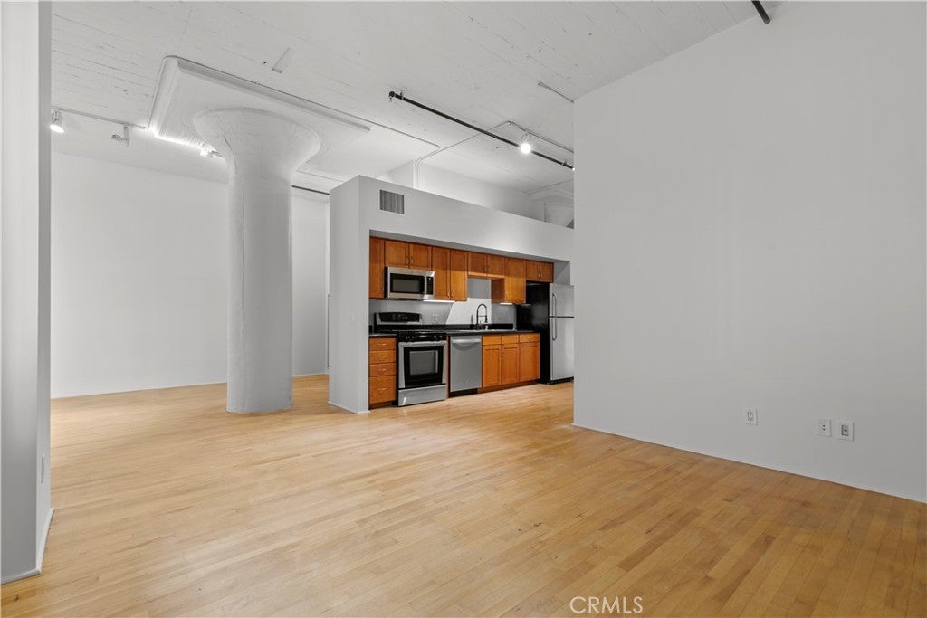 The live/work loft at Little Tokyo Lofts features a one-of-a-kind floor plan that offers defined living areas while maintaining the open loft aesthetic. Soaring ceilings, expansive windows, hardwood floors, and a remodeled kitchen, along with a large walk-in closet. The unit includes a refrigerator, washer, and dryer. Originally built in the 1920s as the historic Westinghouse Electric elevator factory, Little Tokyo Lofts was transformed into stylish condominiums in 2005. Residents enjoy resort-style amenities including a heated pool and spa, BBQ area, gym, dog run, 24-hour security, and secure parking with one assigned space plus guest parking in the garage.The community has a welcoming, small-town feel and is just a five-minute walk from the heart of Little Tokyo.
