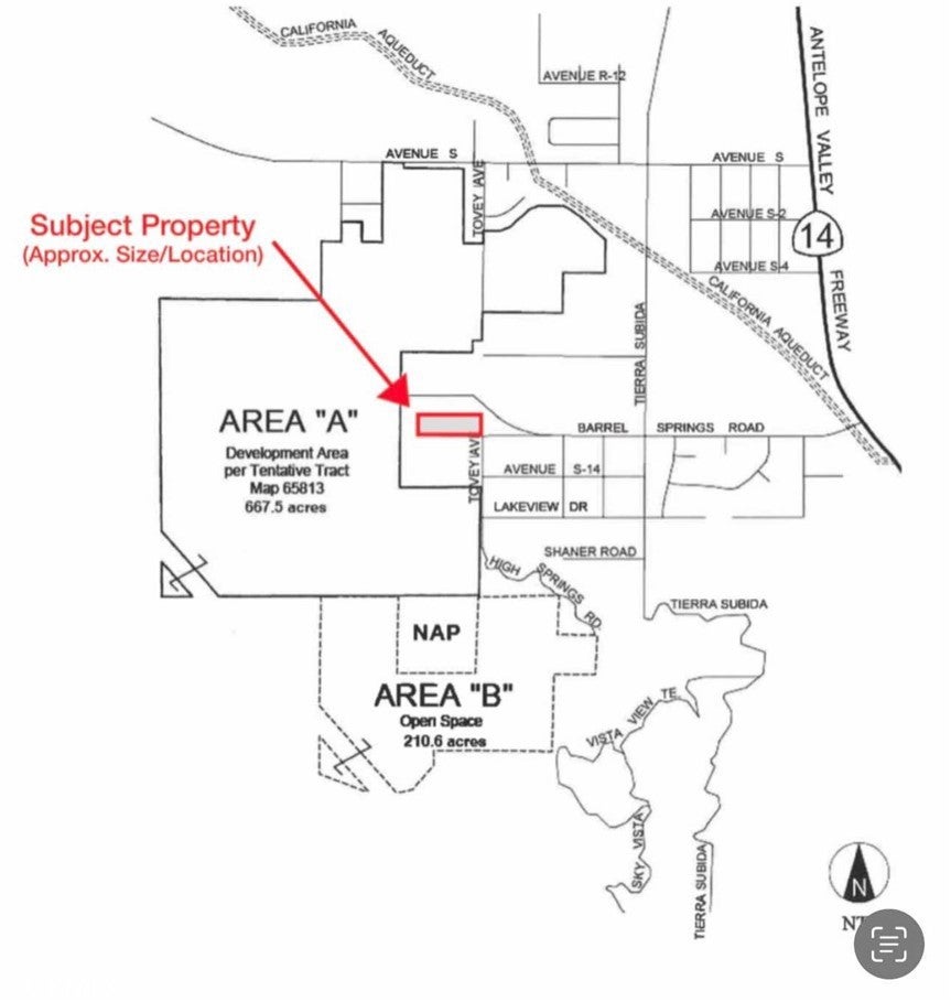 Discover the endless possibilities with this remarkable 10-acre vacant land for sale in West Palmdale, just minutes from Lake Palmdale. Set against breathtaking desert and mountain views, this prime location is ideal for those seeking a custom estate, private retreat, or long-term investment opportunity. Conveniently located within 1,000 feet of the future Quail Valley Community, a highly anticipated residential development featuring up to 730 single-family homes, a 3.6-acre HOA-maintained amenity center, a 23-acre greenbelt and trail network, and nearly 400 acres of preserved open space, this property offers excellent growth potential while maintaining the peaceful charm of the high desert. Enjoy expansive open spaces, vivid sunsets, and crystal-clear starry nights — a true escape from city life while staying just minutes from major highways, shopping, dining, and essential services. Whether you're a developer, investor, or homebuyer envisioning your dream property, this West Palmdale land presents a rare opportunity to invest in one of Los Angeles County’s fastest-growing regions, with future community amenities and increased property values on the horizon.