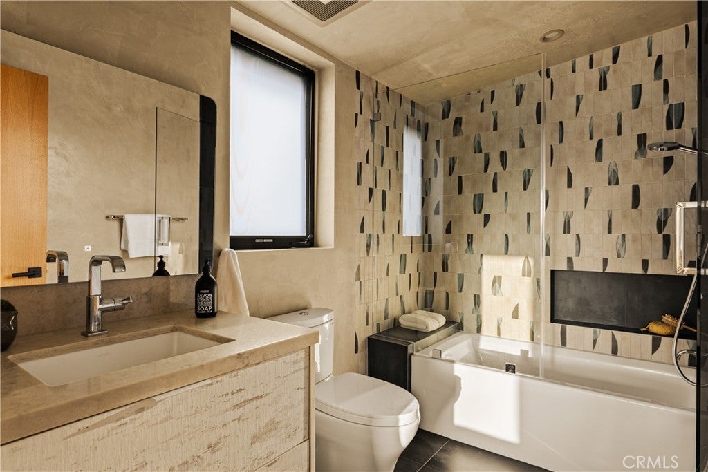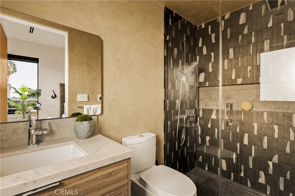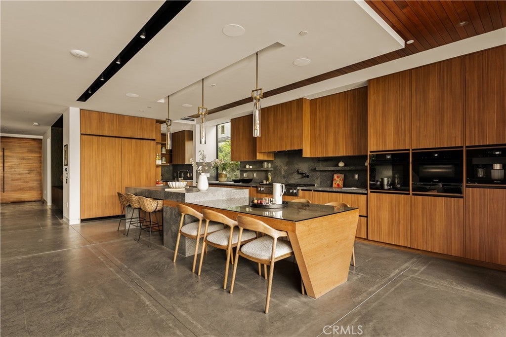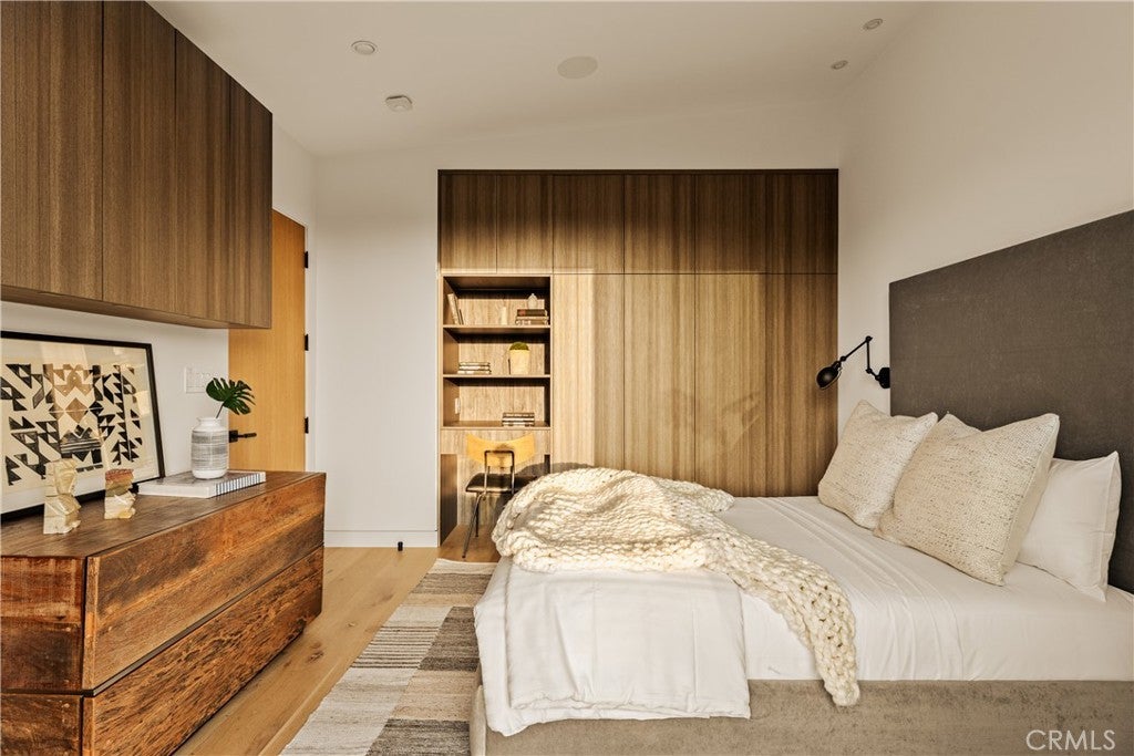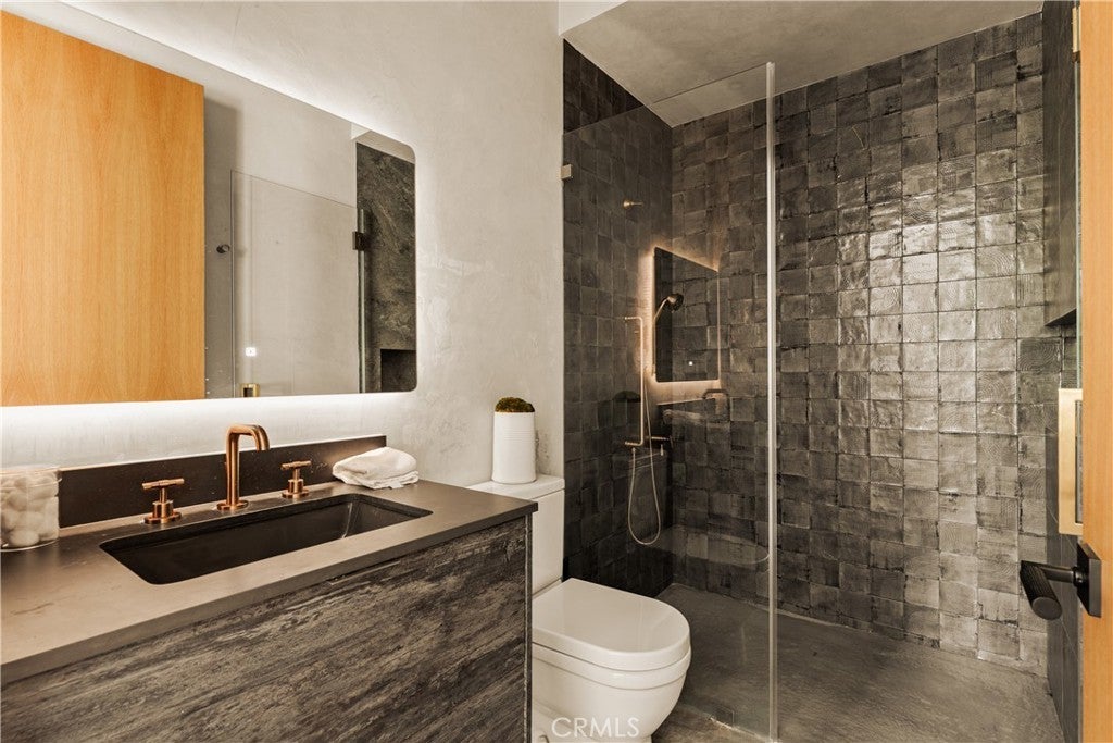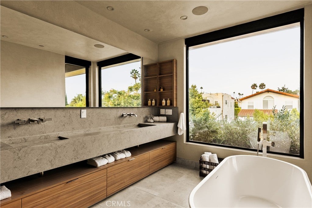 Modern luxury and architectural brilliance await at 540 N Gardner. a 2022-built architectural masterpiece in the highly sought-after Melrose Park neighborhood. This 5-bedroom, 5.5-bathroom smart home seamlessly blends sleek design with exceptional functionality across 3,864 square feet of curated space. Every detail is elevated: Fleetwood automatic pocket doors, radiant-heated concrete flooring downstairs, engineered wood upstairs, and heated floors in every bathroom. The gourmet kitchen impresses with floor-to-ceiling European cabinetry, quartz countertops, and a full suite of top-tier Miele appliances—including in-wall ovens, a steam oven, dishwasher, coffee system, and dual 36” panel-ready fridge/freezer. Indoor-outdoor living is effortless with a heated covered patio, saltwater pool and spa, outdoor shower, and pool house featuring a 2-person sauna. Entertain from the rooftop deck with built-in BBQ and city views. A full Lutron automation system, Sonos sound, solar panels, whole-house water and IQ-Air HEPA filtration elevate both lifestyle and wellness. Just steps from premier Melrose dining, shops, and nightlife.