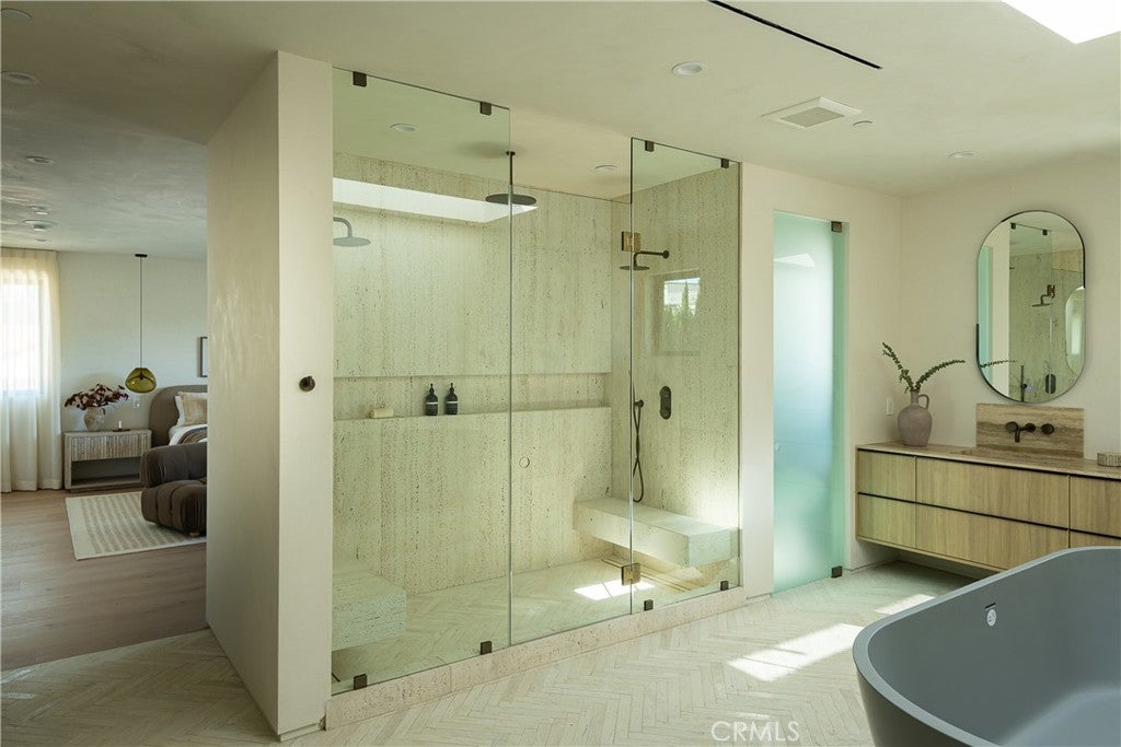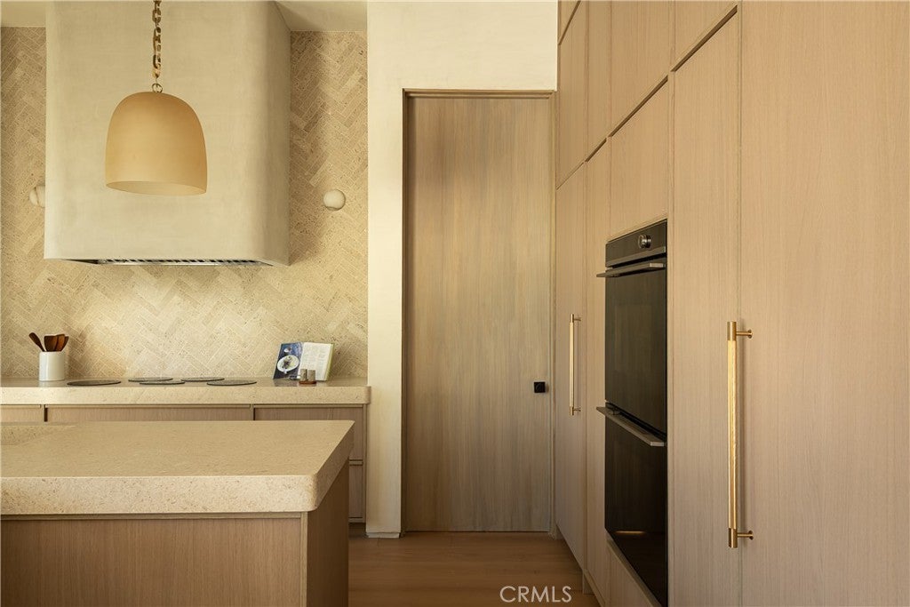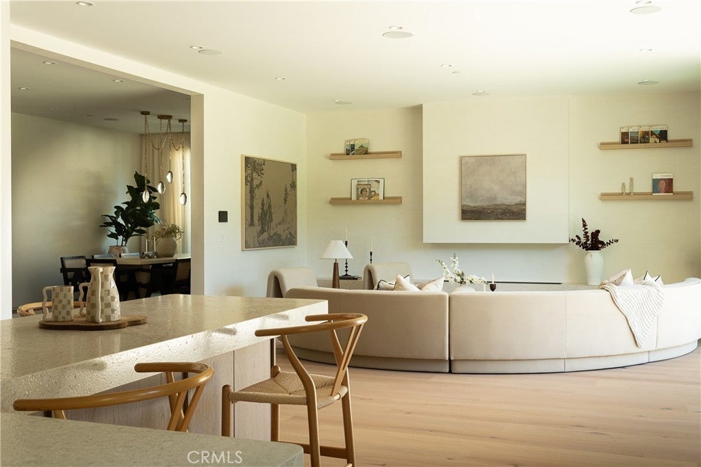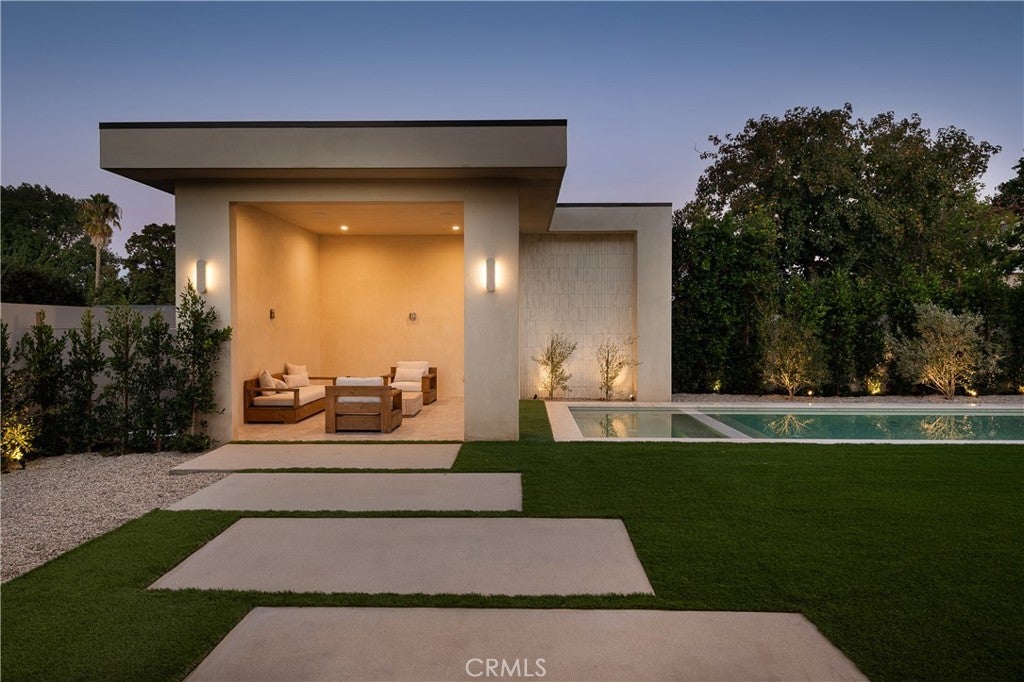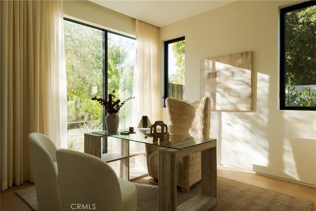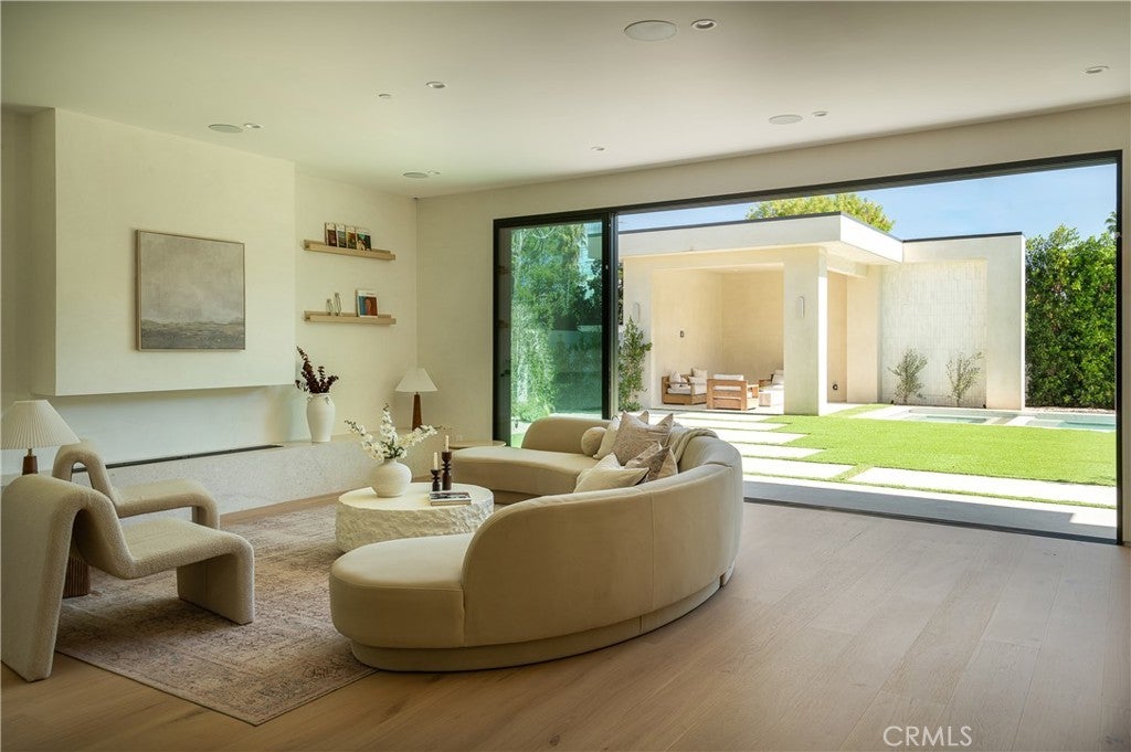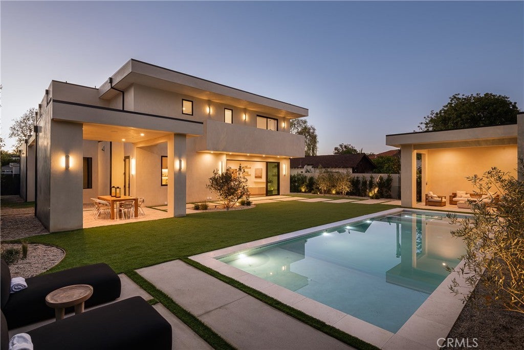 Welcome to 4824 Calhoun Ave — a stunning custom Adobe Contemporary estate nestled in the heart of Sherman Oaks. This newly constructed 5-bedroom, 5.5-bathroom home with a private movie theater redefines modern luxury with an organic, high-design aesthetic and family functionality. Spanning 5,050 square feet on a rare 10,263 square foot lot, every inch of this residence has been thoughtfully curated with sophistication, warmth, and smart living in mind. Step inside to soaring ceilings, beautifully textured smooth plaster walls and ceilings, and wide-plank oak flooring that set a tone of serene refinement. The home is fully outfitted with Control4 smart home automation, delivering seamless control of lighting, climate, security, and a whole-home surround sound system. The custom European kitchen is a showstopper, featuring Fisher & Paykel appliances, natural stone countertops, open wood shelving, and stunning pendant lighting — all designed to elevate daily living and entertaining. The kitchen opens effortlessly to an expansive living and dining area that flows outdoors through oversized sliding glass doors, creating true indoor-outdoor living. The spacious movie theater room offers the ultimate in at-home entertainment, while each bedroom features its own en-suite bath and curated finishes. The primary suite includes a private terrace, spa-like bathroom, and large walk-in closet. Outdoors, the large backyard is an entertainer’s dream, complete with a lush lawn, sparkling pool, and covered patio for al fresco lounging or dining. Perfect for families seeking space to grow, play, and enjoy, this home is located just walking distance to Trader Joe’s, Westfield Fashion Square, coffee shops, and more. A rare opportunity to own a high-end home with luxury finishes in one of LA’s most desirable neighborhoods — blending style, space, and smart living in one unforgettable package.