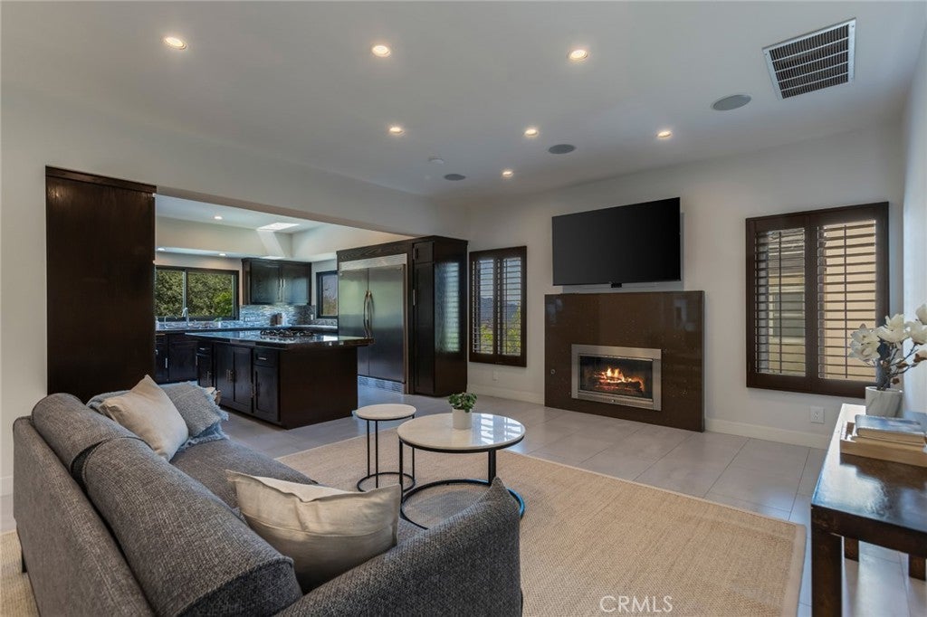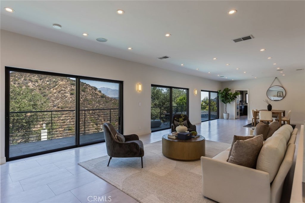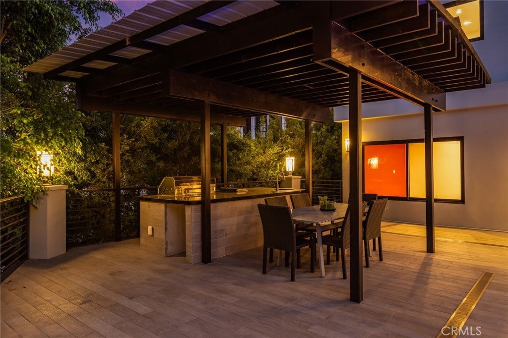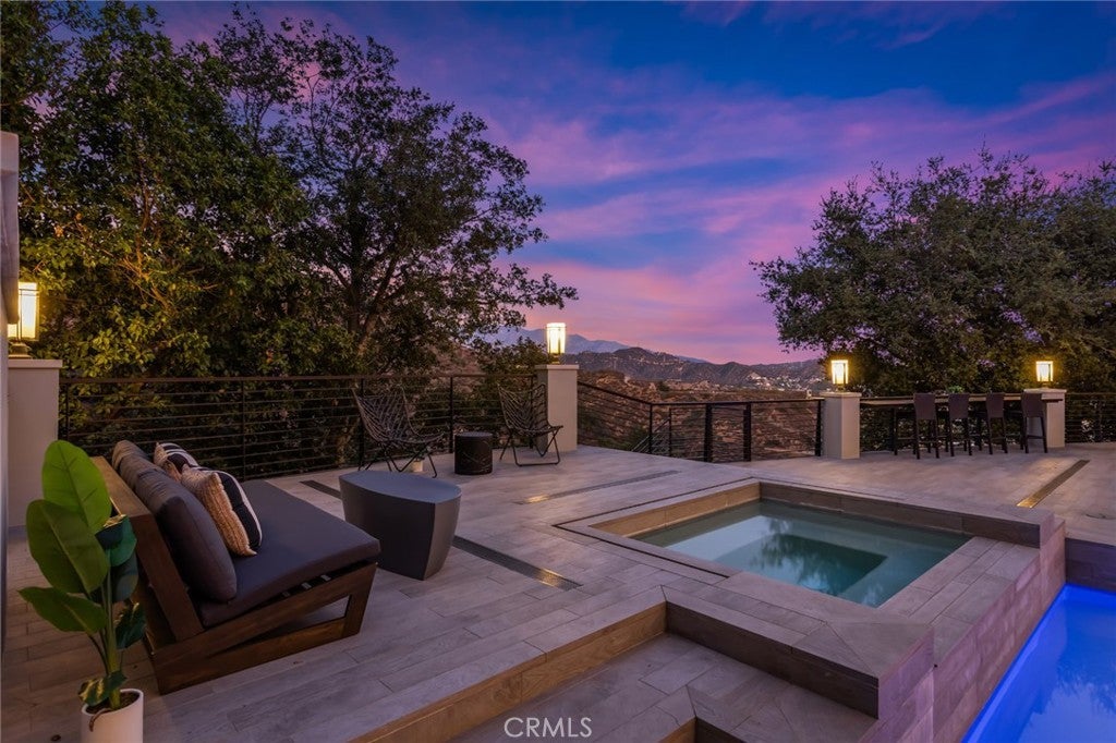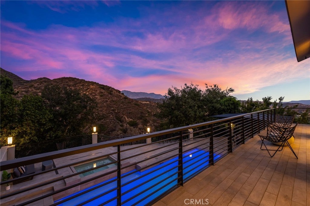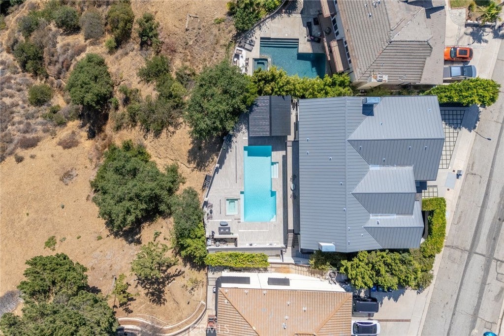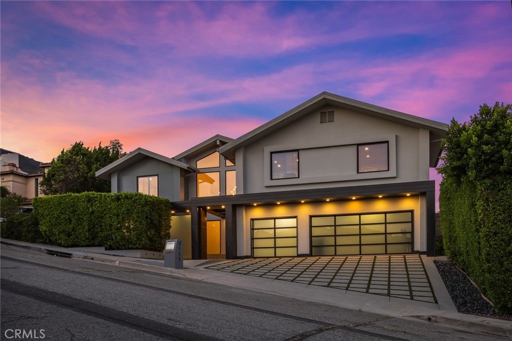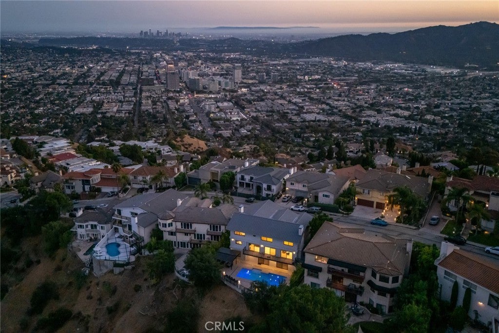 Poised along Glendale’s most coveted address, Rimcrest Drive, this contemporary estate unfolds across more than 6,000 square feet of inspired design, marrying architectural artistry with resort-style amenities. Spanning three impeccably crafted levels beneath a striking metal roof, the residence commands unobstructed vistas that sweep across the canyons. From the upper levels, the views extend to the glittering skyline of downtown Los Angeles. The principal level serves as the epicenter of daily life, where voluminous living and dining spaces are bathed in natural light and framed by soaring ceilings, floating staircases, and walls of glass. A chef’s kitchen anchors the floor-plan, complemented by a refined office/library that affords both privacy and versatility. The lower entertainment level is devoted to leisure and conviviality, offering an expansive lounge, sleek bar, full bath with shower, and a secondary laundry area. This floor flows seamlessly to the outdoors, where a heated saltwater pool, a fully appointed covered barbecue kitchen, and generous terraces create an idyllic retreat for alfresco entertaining beneath the stars. The upper level is reserved for private living, encompassing four bedrooms and three bathrooms, including a primary suite of grand proportion. Here, a spa-inspired bathroom, an oversized walk-in closet, and a dedicated shoe closet evoke the ambiance of a private dressing salon, while an additional laundry area enhances convenience. Distinguished appointments include three fireplaces, three HVAC systems, a whole-house audio system, dumbwaiter, water softener, dog run, and a finished three-car garage with epoxy flooring and an electric vehicle charger outlet. An extraordinary union of contemporary elegance and uncompromising functionality, this Rimcrest Drive residence offers a lifestyle defined by privacy, prestige, and breathtaking city views.