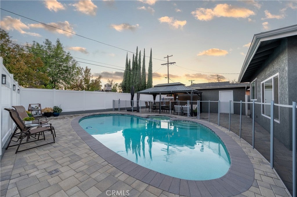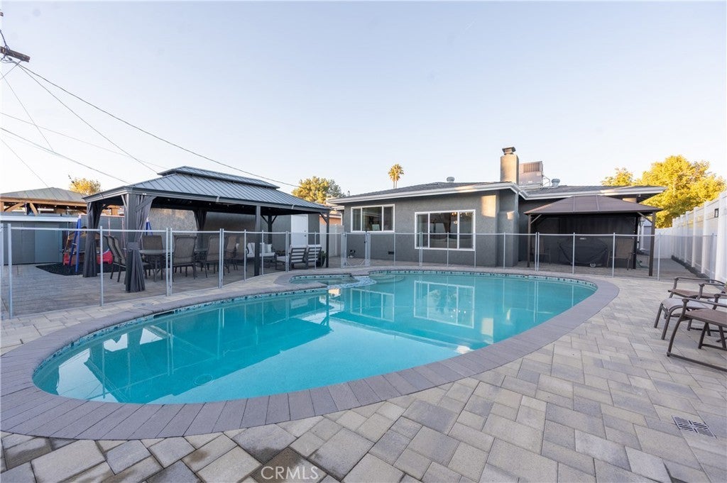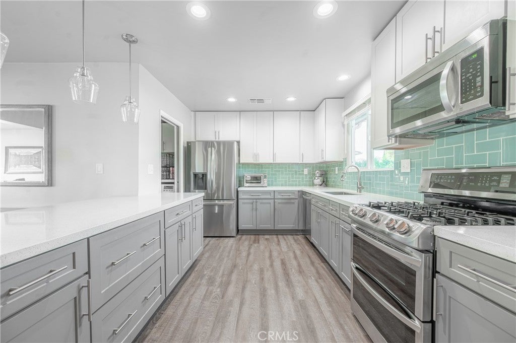 Welcome to Granada Hills living at its finest! This single story home is ready to go! The home has a 4 bedroom and 2 bathroom layout (4th bedroom is currently a dining room) with a fully remodeled kitchen with a window overlooking the mountain-scape, an oversized peninsula island (quartz countertops) providing ample prep, serving, and casual dining area! Newer flooring throughout the home which also boasts a formal dining room, a living room, and a bonus family rm that overlooks the pool. Both bathrooms have been fully updated with marble countertops! Numerous updates have been done with the HVAC replaced in 2019 (5 ton/16seer rated), copper repiping throughout in 2012, roof was estimated to be installed in 2014, Milgard dual pane windows installed in 2017, and a newer water heater! The property has an expansive layout with a completely remodeled landscape and hardscape including newer pavers, turf grass, oversized driveway and gated rear driveway that leads to the prized detached garage (potential ADU opportunity!). The pool along with the landscaping was completely redone within the last few years, an in ground jacuzzi added with the pool remodeled with pebble finish known to last decades. This is truly an entertainers delight and a private backyard oasis! Even more it is located within minutes of shopping at Target, Vons, local eateries, Friday night food trucks and quick access to the 118 freeway.