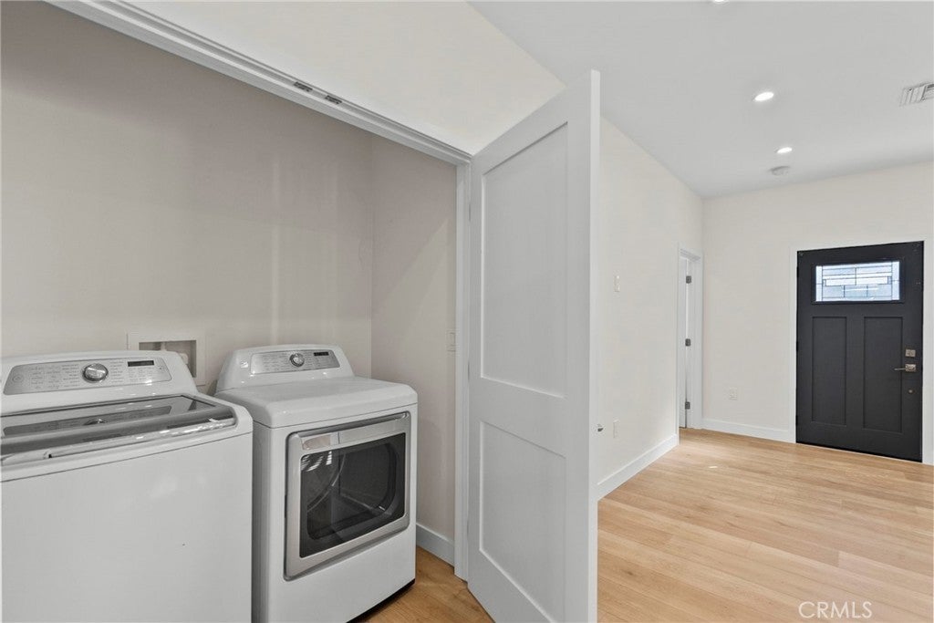Tucked away in one of Burbank’s most desirable hillside neighborhoods above Bel Aire Drive, this beautifully designed one-bedroom, one-bathroom ADU offers modern living with privacy and style. With its own fenced sitting area and private alley access, this home provides a quiet retreat separate from the main residence while remaining close to the heart of Burbank’s most sought-after amenities. Inside, the home features wide-plank engineered hardwood floors, high ceilings with recessed lighting throughout, and double-pane windows with blinds for comfort and energy efficiency. The open kitchen is both stylish and functional, showcasing stone countertops, soft-close cabinetry, and a full suite of appliances—including a refrigerator, stove, dishwasher, and washer and dryer, all included in the lease. The spacious bedroom features recessed lighting and a walk-in closet, while the bathroom offers tile floors and a full tub with an overhead shower. A convenient washer and dryer closet is located off the living area, and a cozy kitchen nook provides space for dining or a home workspace. Step outside to your private, concrete sitting area—perfect for morning coffee or evening relaxation. The ADU is accessed via the back alley, with parking available directly in front of the garage or on the street. (Please note: garage not included in lease.) Combining privacy, contemporary finishes, and an unbeatable Burbank location, this ADU is ideal for those seeking a stylish, low-maintenance home in one of the city’s most exclusive residential areas. * 1 year minimum lease required. No short term or month to month leases * Tenant pays for all their own utilities as unit has its own meters * No garage or carport included in lease. Street parking is widely and commonly available in front of the house or in front of garage by the front door has a designated space for this unit.
