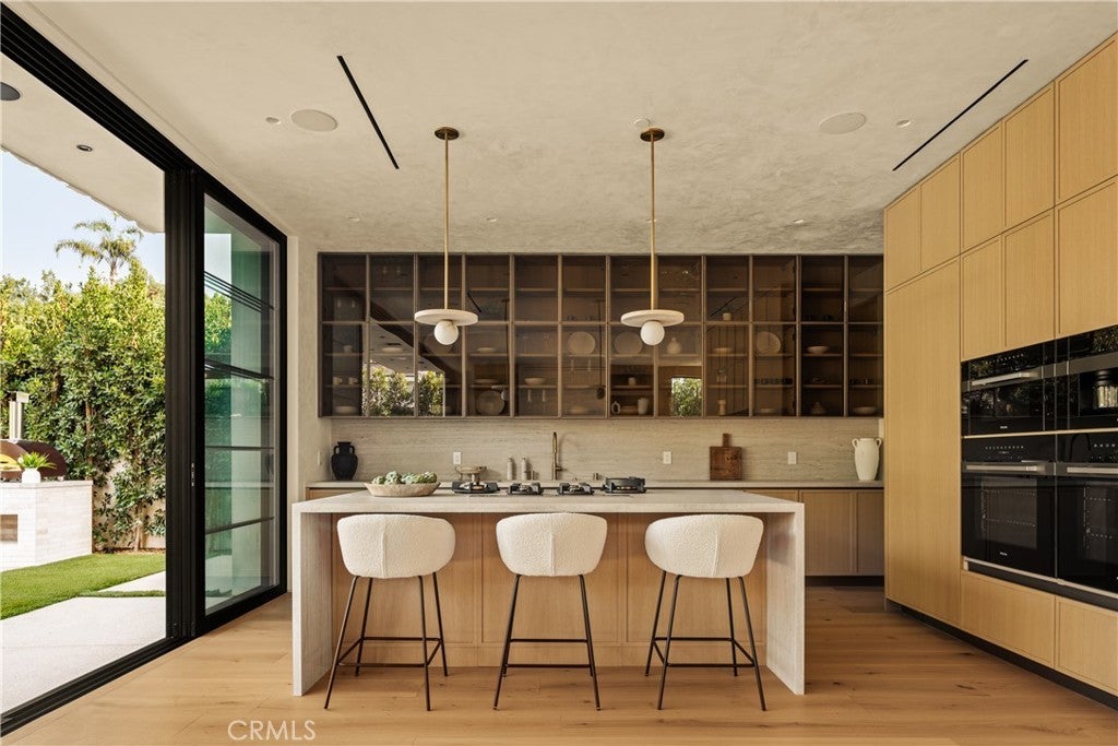 Experience elevated living and exceptional craftsmanship in this brand-new contemporary estate by MLR Development, perfectly located in the heart of Sherman Oaks. Designed with modern California living in mind, this 5-bedroom, 6-bathroom residence blends effortless luxury, architectural precision, and seamless indoor-outdoor flow. A grand entry welcomes you into an open-concept floor plan filled with natural light, soaring ceilings, and seamless indoor-outdoor flow. Designed for both relaxation and hosting, the first floor includes a private ensuite bedroom—perfect as a guest suite or sophisticated home office—along with a spacious theatre room for the ultimate cinematic experience. The gourmet chef’s kitchen impresses with state-of-the-art Miele appliances, stone surfaces, imported custom wood cabinets, an oversized island with seating, and wall to wall 10ft’ collapsing glass doors opening to the backyard for true resort-style living. Step outside through these expansive glass doors to your private backyard sanctuary. Designed for large-scale entertaining and everyday relaxation, the outdoor oasis features a sparkling pool and spa, built-in barbecue, Green Egg smoker & pizza oven, generous lounge and dining spaces, and lush landscaping for total privacy. Upstairs, four ensuite bedrooms provide privacy and comfort, including a stunning primary retreat bathed in natural light. The primary suite showcases a sleek fireplace, custom walk-in closet, and a spa-inspired bathroom complete with dual vanities, a soaking tub, and an oversized steam shower. A rare opportunity to call this exceptional residence home!