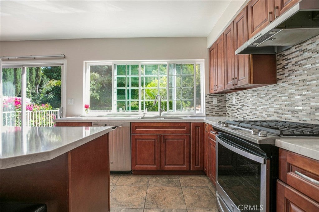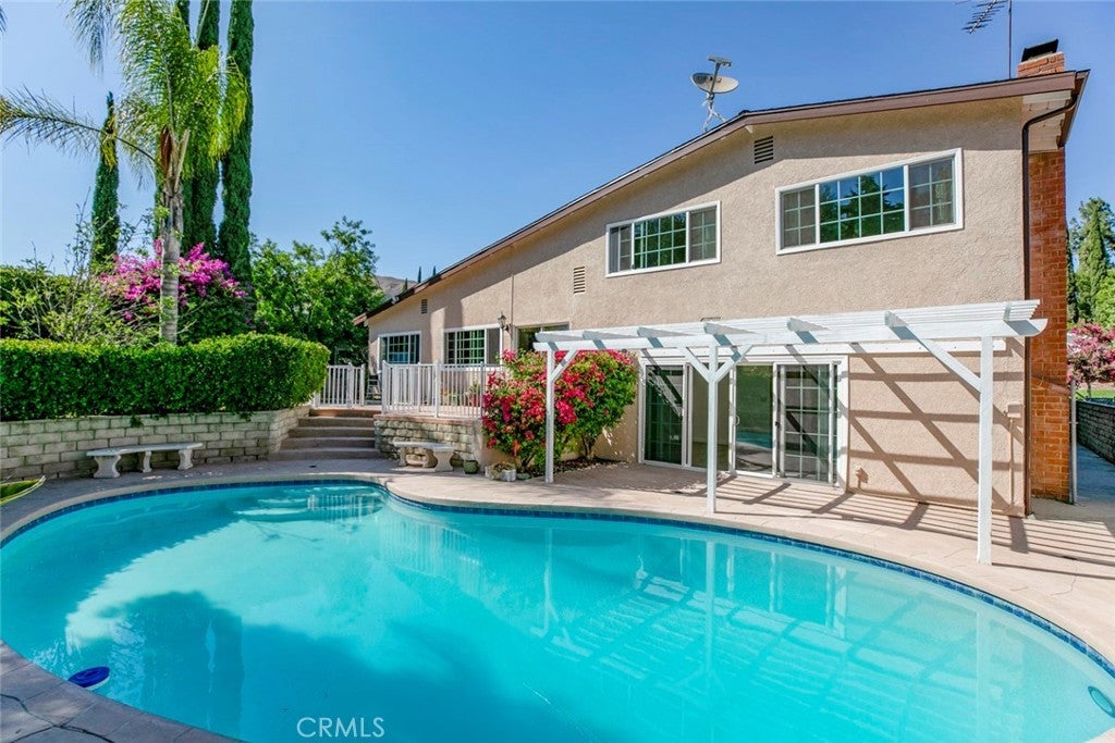 Prestigious neighborhood north of Rinaldi in Granada Hills. This breathtaking 2,532 sq ft home, with four bedroom and three bathrooms.From the moment you arrive, the home commands attention with its striking solid wood double entry doors, setting the stage for a residence filled with refined elegance. Recent renovations ensure a turnkey experience, including energy efficient dual-pane windows.The private oasis at the rear is a masterclass in outdoor design, featuring a reinvigorated pool with new plaster, tiles, and ambient lighting. Stamped pavement encircles the pool, leading to a chic pergola and an array of trees, creating a perfect backdrop for entertainment or relaxation. Step inside to discover a home that radiates sophistication and warmth. The interior boasts fresh paint and new laminate flooring across the communal areas, including a stunning kitchen that serves as the heart of the home. Here, quartz countertops, cherry wood cabinets, and a center island invite culinary exploration. The master suite is a haven of comfort, complete with a private bathroom and an inviting balcony offering serene views. This home is not just a place to live; it's a lifestyle choice. With copper plumbing, every detail has been curated for comfort and peace of mind. The attached two-car garage provides convenient home access, underscoring the thoughtful design of this magnificent property. Situated in a neighborhood known for its tranquility and proximity to natural beauty spots like O'Melveny Park and Bee Canyon, this home also offers easy access to freeways, shopping, and dining. Your dream of upscale living in Granada Hills is within reach. Discover the perfect blend of style, comfort, and convenience in this magnificent home.