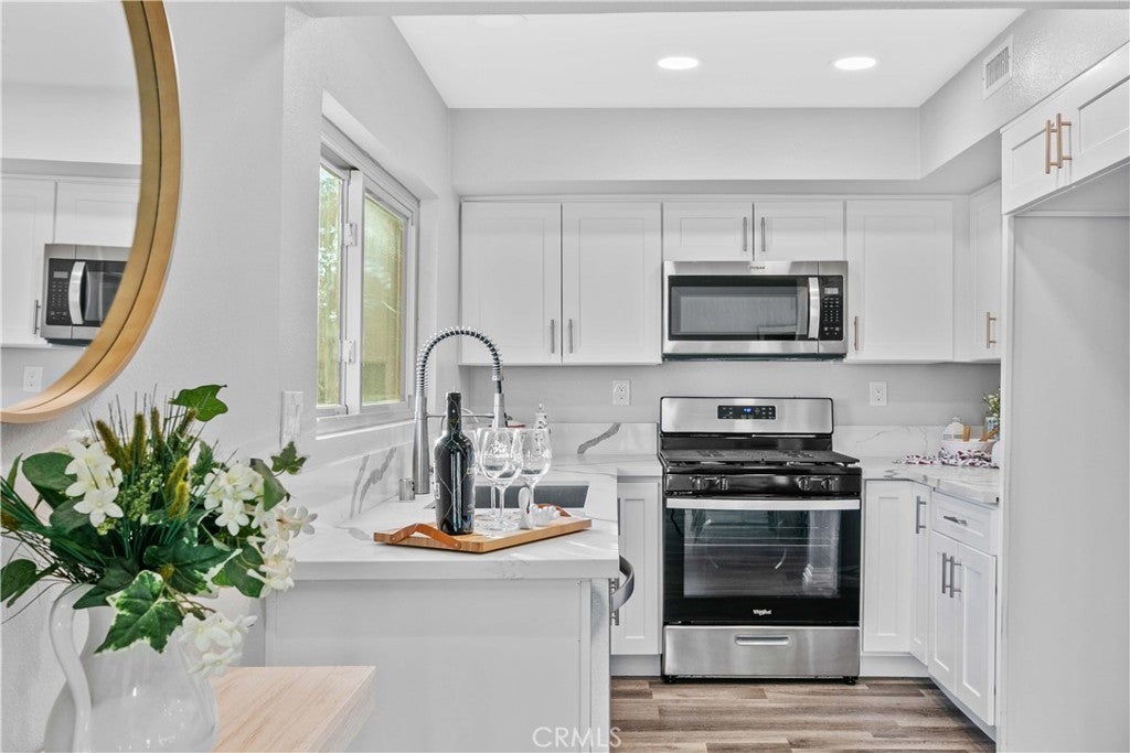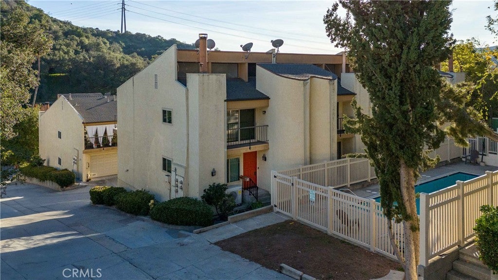 Beautifully Remodeled Townhome in Glendale’s Coveted Sparr Heights / Verdugo Woodlands! Nestled in the peaceful hills of the highly desirable Verdugo Woodlands and Sparr Heights neighborhood, this beautifully updated townhouse offers 1,346 sq. ft. of bright and modern living space. Featuring 2 spacious bedrooms and 3 bathrooms, this home is move-in ready and filled with natural light. The inviting living room includes a cozy fireplace, large dining area, updated kitchen with white shaker cabinets, white marble quartz countertops, and stainless-steel finishes with a window overlooking the mountains and greenery. The primary suite offers cathedral ceiling, its own mini-balcony, ample closet space, and a newly updated bathroom with elegant quartz countertops and tiled shower. 2nd bedroom also with high ceiling, huge closet space and a balcony. Additional highlights include newer light wood laminate flooring, recessed lighting, all new widows, central air & heat, and a 2-car attached garage with direct access, and a huge storage room/laundry area. complex also has a pool. Conveniently located near Glorietta Park, Montrose Village, shopping, dining, cafés, and entertainment options. Offers easy access to the 134, 210, and 2 freeways, providing a short drive to Downtown Los Angeles or the San Fernando Valley. The well-maintained complex features only 18 total units across 5 buildings, provides a peaceful, nature-inspired setting close to city conveniences.