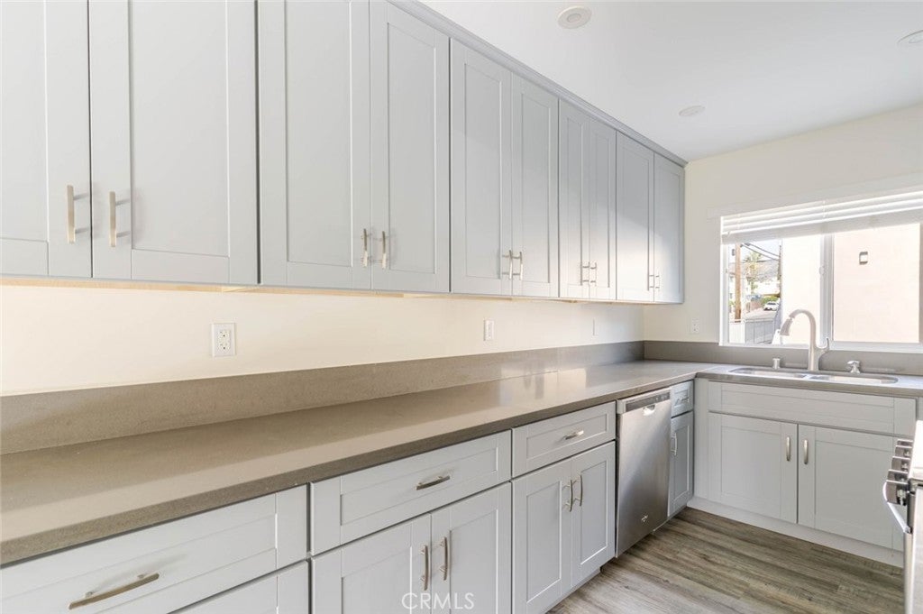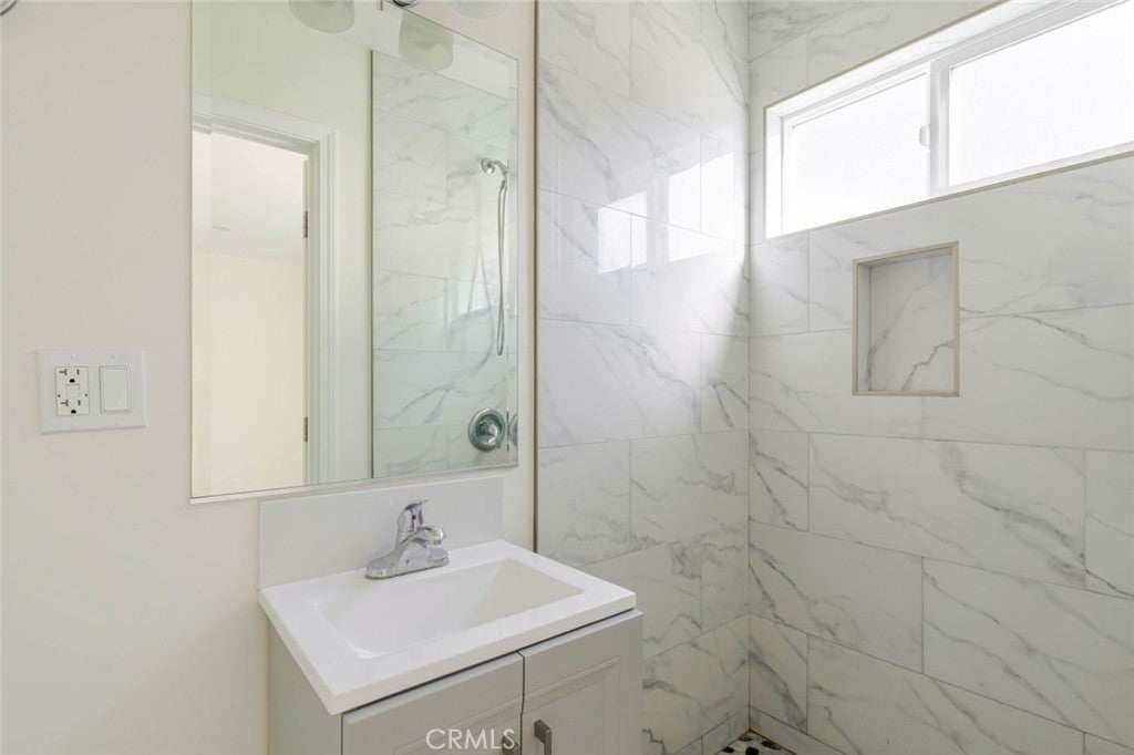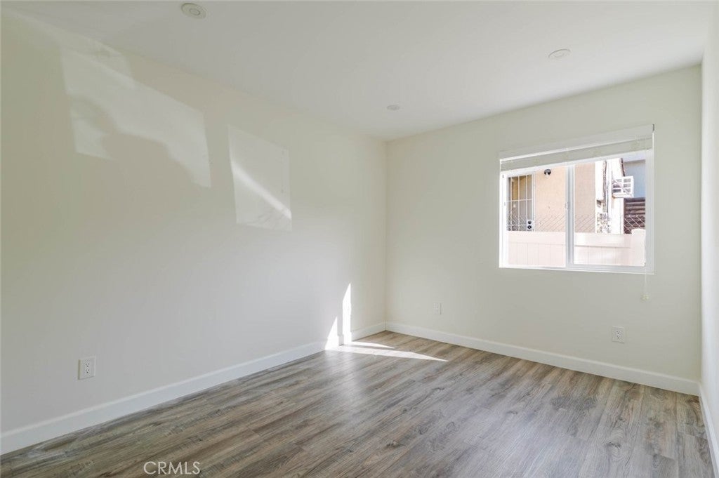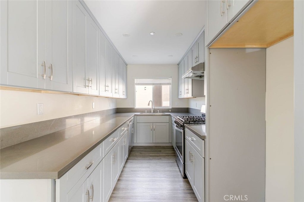 Beautifully remodeled 3-bedroom, 2-bathroom residence for lease in a 2020-built building, offering 1,120 sq. ft. of modern living space. The home features wood-style flooring and recessed lighting throughout, creating a warm and inviting atmosphere. The contemporary kitchen is equipped with sleek quartz countertops, generous cabinet space, and stainless steel appliances including a dishwasher, gas stove, and range. Both bathrooms reflect the clean, modern design of the newer construction, featuring tiled showers and quartz countertops. Additional highlights include mirrored closet doors, neutral interior tones, abundant natural light in the main living area, and the convenience of in-unit laundry. Two uncovered parking spaces are located on the property for added ease.