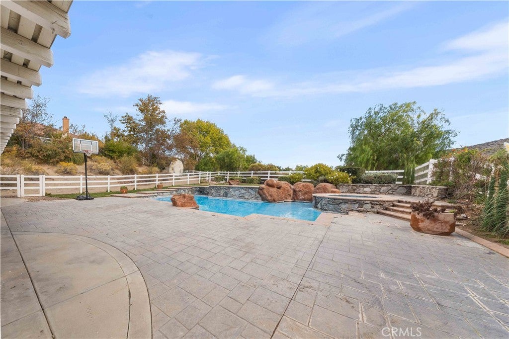 Amazing opportunity to live in highly sought-after Star Point Ranch! This single-story pool home on usable acreage offers 3 bedrooms plus a versatile flex room ideal for an office, gym or 4th bedroom. The open-concept layout, high ceilings and large windows create a bright, airy feel. The center-island kitchen features generous counter space, plentiful cabinetry and newer stainless-steel dishwasher and microwave, opening to the great room for easy everyday living and entertaining. A separate indoor laundry room adds extra storage and convenience. Step outside to your resort-style backyard with an expansive covered patio and a gorgeous pool with waterfall and spa – perfect for sunset dinners and weekend gatherings. The remaining acreage includes two horse stalls, tack room and a large flat pad with room for trailers, toys or future improvements (buyer to verify). Enjoy paved-road access, natural gas, county water, a 3-car garage and spacious RV parking. Leave the city behind and savor peaceful Acton living and star-filled night skies!