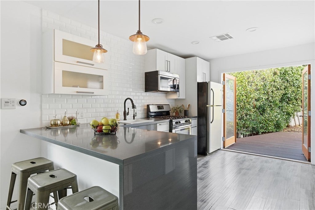 Say hello to the Glendale cottage with the unforgettable yellow door, a cheerful entry to a home full of charm, light, and personality. This beautifully updated two-bedroom bungalow sits on a sunny corner lot in the heart of Citrus Grove and offers a bright, inviting flow from the moment you step inside. Walk through the vibrant yellow door and into a warm living space filled with natural light. The kitchen is thoughtfully designed with generous cabinetry and modern touches that make everyday cooking simple and enjoyable. Both bedrooms feel comfortable and welcoming, and the refreshed bath adds to the home’s move-in ready appeal. Just outside, a private yard offers the perfect little retreat for morning coffee, gardening, or unwinding in the sunshine. A deck expands your outdoor living space and the bonus storage room adds flexibility for hobbies or extra organization. The corner-lot setting brings in more natural light and gives the entire home an airy, open feel. With a Walk Score in the nineties, you’re just moments from cafés, shops, parks, and neighborhood conveniences, making everyday life wonderfully easy. Additional features include recessed lighting throughout, central air and heat, a tankless water heater, dual pane windows, new attic insulation, sleek black fixtures and hardware, a NEST thermostat, and a door keypad for easy access. Charming, cheerful, and unforgettable, this yellow-door cottage is ready to brighten someone’s next chapter.