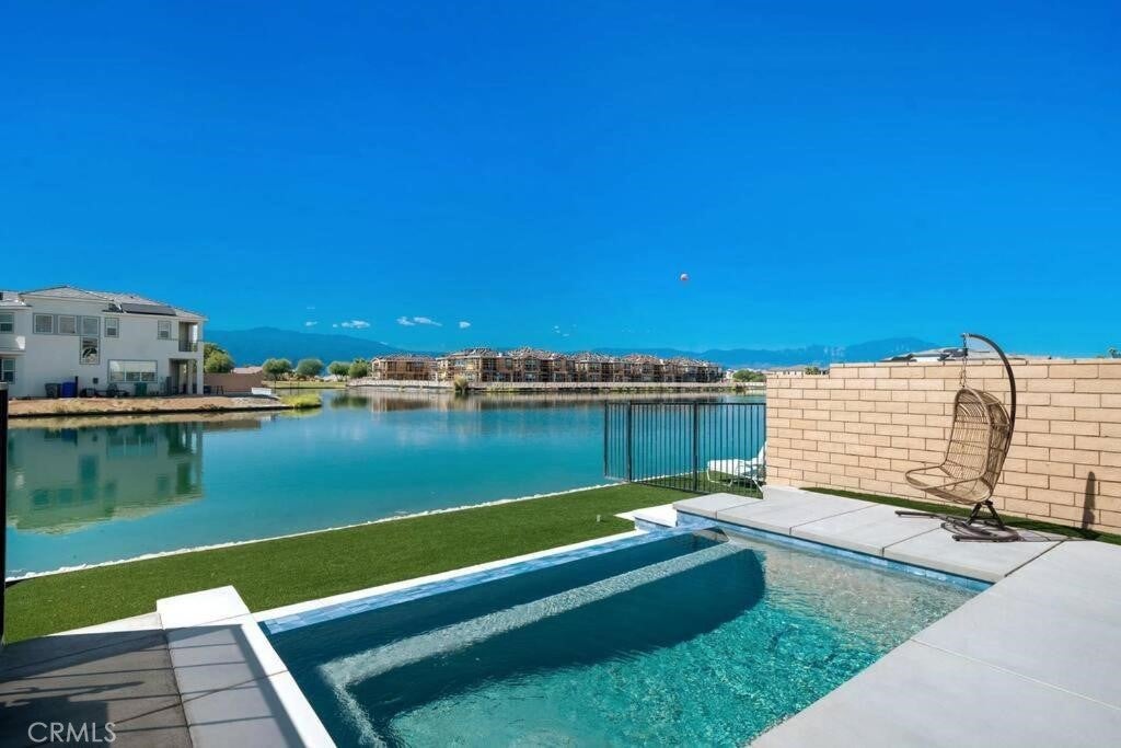 Experience luxury lakefront living in this beautifully updated and fully furnished 2-story Indio home in the sought-after, Terra Lago community. Featuring 4 bedrooms, 4 bathrooms, and an additional upstairs bonus room that can function as a 5th bedroom. This bright, modern residence offers an open-concept layout with upgraded tile flooring, fresh designer paint, and large windows showcasing stunning water views. The updated gourmet kitchen features quartz countertops, stainless-steel appliances, custom cabinetry, and elegant pendant lighting that flows into the spacious dining and living areas. The remodeled primary suite includes a private balcony with panoramic lake and mountain views. Outside, enjoy a resort-style backyard with modern concrete hardscape, artificial turf, updated pool tile, multiple seating areas, and a sparkling pool overlooking the serene lake. Energy-efficient solan panels provide added savings and value. Turnkey, beautifully upgraded, and set on rare waterfront: this home offers the ideal blend of comfort and luxury living. Whether you’re ready to buy your first home or looking for the perfect investment opportunity with this short-term–rental-approved property… you can’t go wrong with this one.