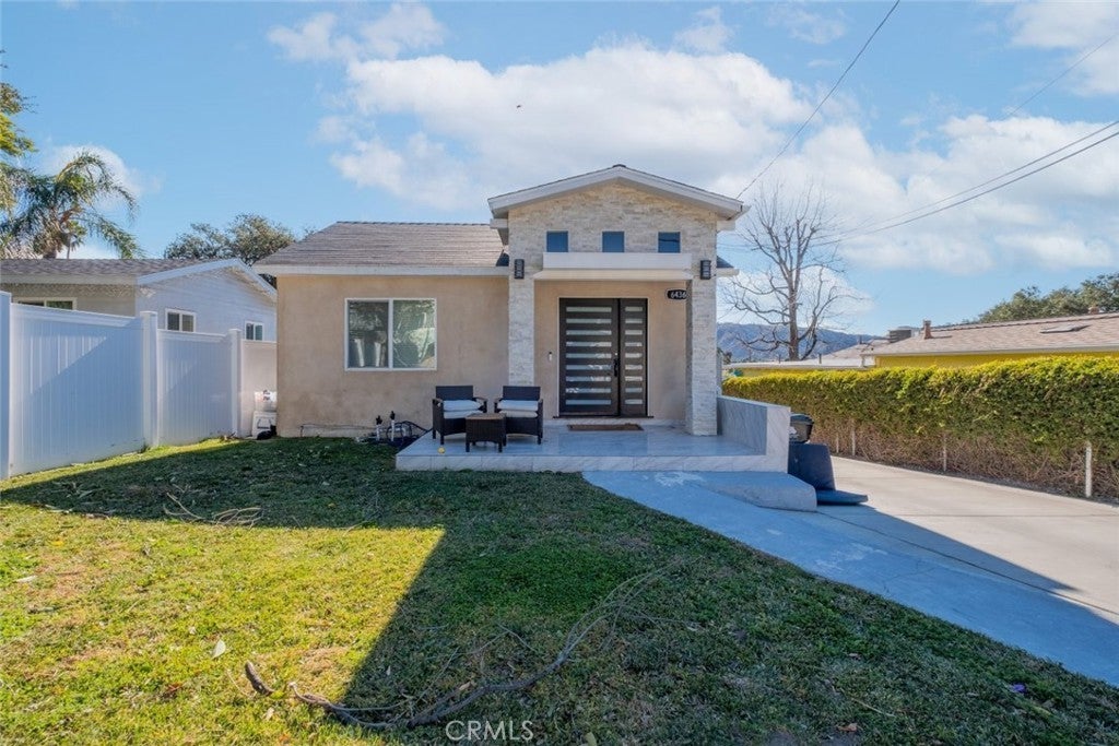 Discover this unique property offering two homes on a spacious lot of nearly 7700 square feet in the heart of Tujunga. With a front house and a newly constructed 3 bedroom ADU built in 2022, this property provides an excellent opportunity for multi generational living, rental income, or extended family accommodations. The front house features 2 bedrooms, 1.5 bathrooms, and 1028 square feet of living space. Highlights include a spacious recreation room, a beautifully designed kitchen with a quartz stone island, abundant cabinetry, and durable stainless steel appliances including a range stove and dishwasher. The living room boasts a charming fireplace, custom decorative moldings, and recessed LED lighting throughout. The bathrooms feature modern fixtures, a custom glass shower enclosure, and a sleek 60 inch wall mounted vanity. The front house is currently tenant occupied through August 31 2026. The ADU is a stunning 3 bedroom, 2 bathroom home with a spacious primary suite that includes a full bathroom and decorative tile finishes. This newer construction offers modern amenities such as double pane windows, central air and gas heating, and laminate wood flooring. The outdoor space is just as impressive with a fully landscaped backyard featuring a newer sprinkler system. The large lot provides ample space for relaxation, entertaining, or future projects. This property is an incredible find combining comfort, modern design, and versatility on a rare large lot in Tujunga.