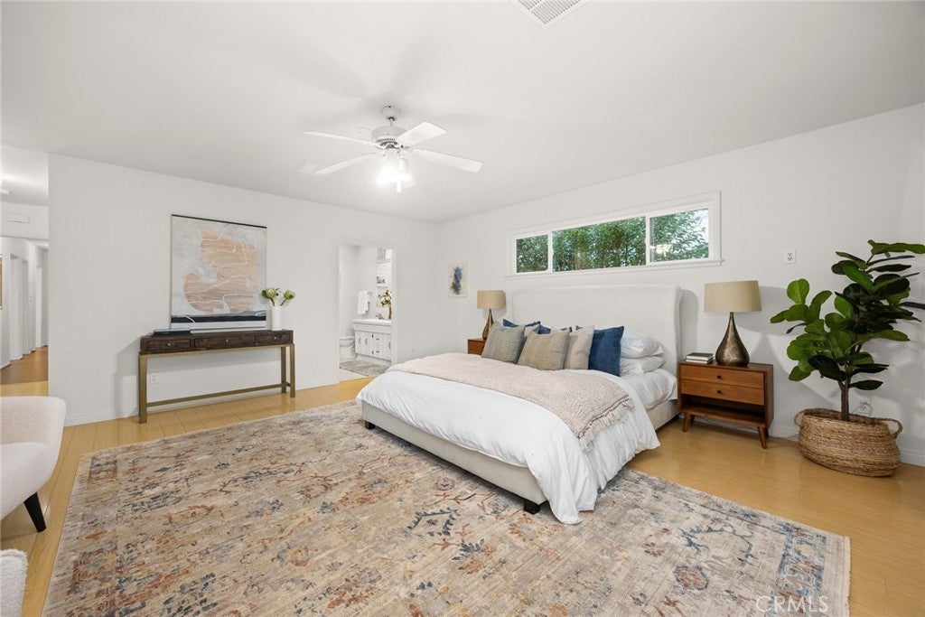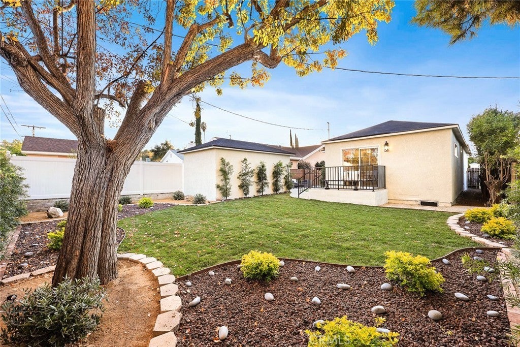 Charming home with exceptional curb appeal, ideally located in a highly desirable neighborhood south of Ventura Boulevard. This 3-bedroom, 2-bath residence sits on a 6,000+ sq ft lot and features an inviting open floor plan designed for both everyday living and entertaining. The light-filled living space flows seamlessly into a designated dining area and a spacious galley kitchen complete with stone countertops and a breakfast area. The generous primary suite offers an en-suite bathroom with dual vanities, a walk-in closet, and direct access to a private outdoor patio and lush backyard—perfect for relaxing or hosting guests. Additional highlights include a gated driveway and a detached garage with excellent potential for a future bonus room or home office. Recent upgrades include new interior and exterior paint, eco-friendly landscaped grounds with lighting, and new light fixtures throughout. A wonderful opportunity in a sought-after location.
