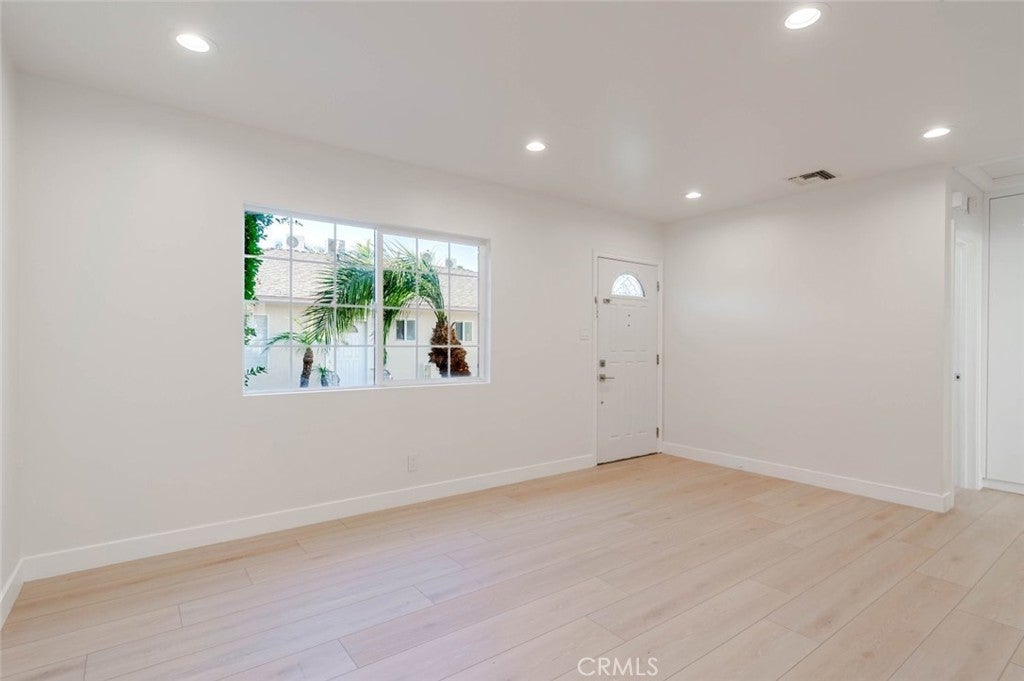 Remodeled 1 Bed / 1 Bath Unit in Charming Triplex- Approx. 600 Sq Ft This beautifully remodeled 1-bedroom, 1-bath unit is located within a well-maintained triplex and offers modern upgrades with a functional, light-filled layout. The residence features wide-plank wood flooring, recessed lighting, and fresh neutral finishes throughout. The open living space flows into a contemporary kitchen with sleek white cabinetry, quartz countertops with designer veining, stainless steel appliances, and a gas range. The spacious bedroom offers ample natural light, while the updated bathroom includes a glass-enclosed shower, modern vanity, and stylish fixtures. Additional highlights include in-unit washer/dryer hookups and a peaceful courtyard-style setting that provides privacy and a residential feel. Move-in ready and thoughtfully updated, this unit offers comfort, style, and convenience within a boutique triplex property.