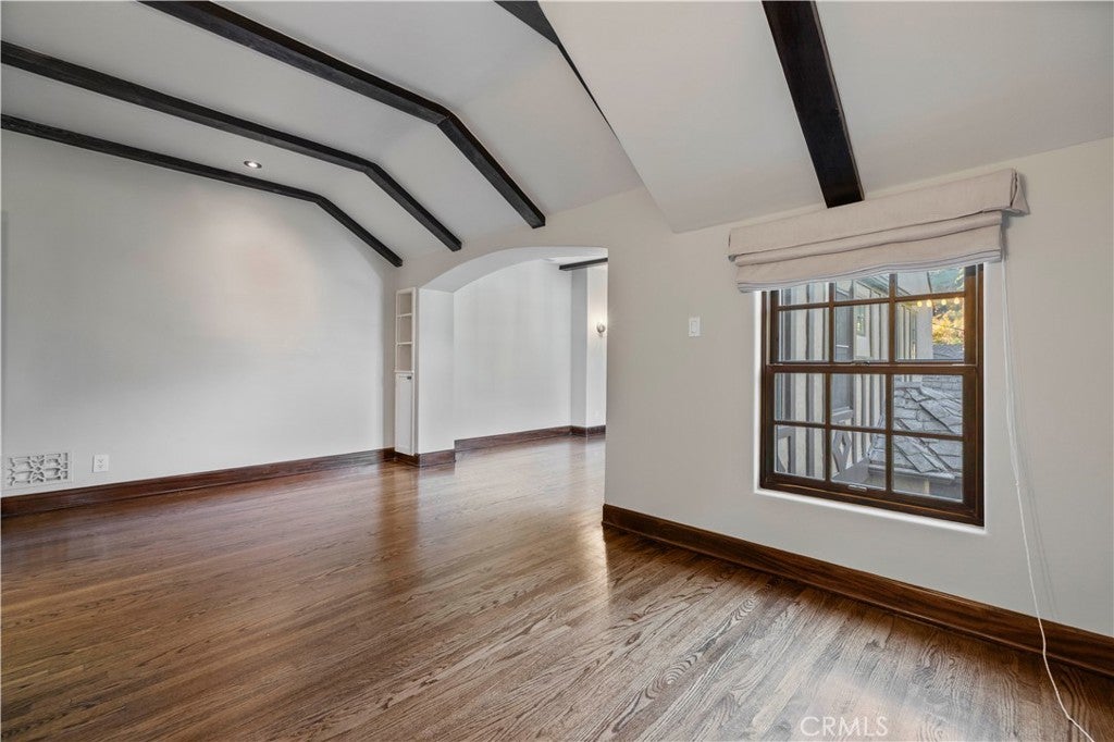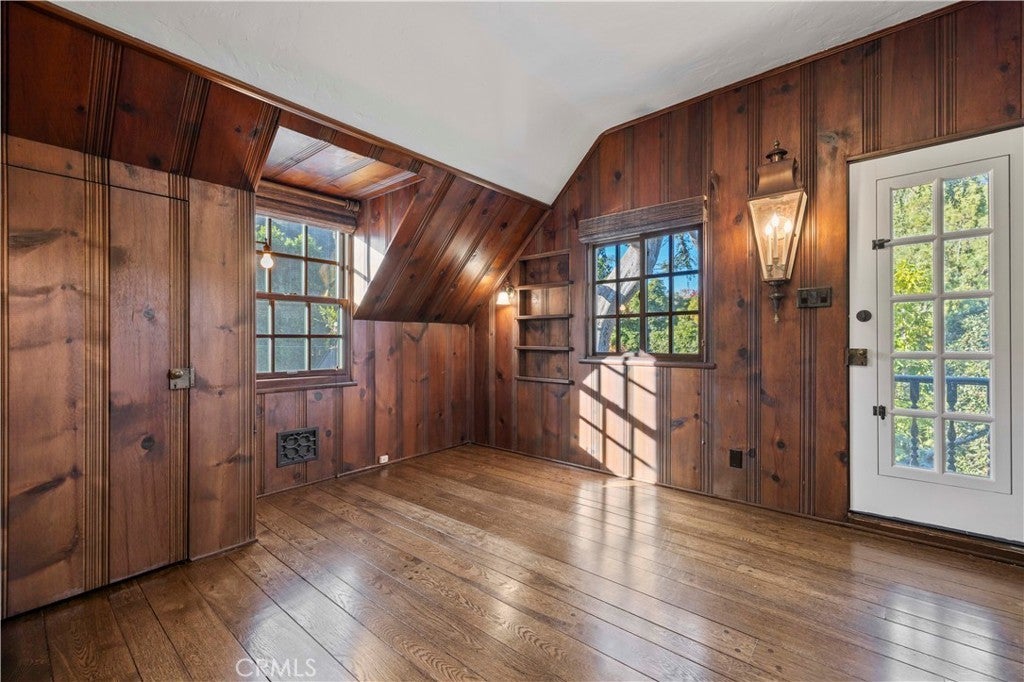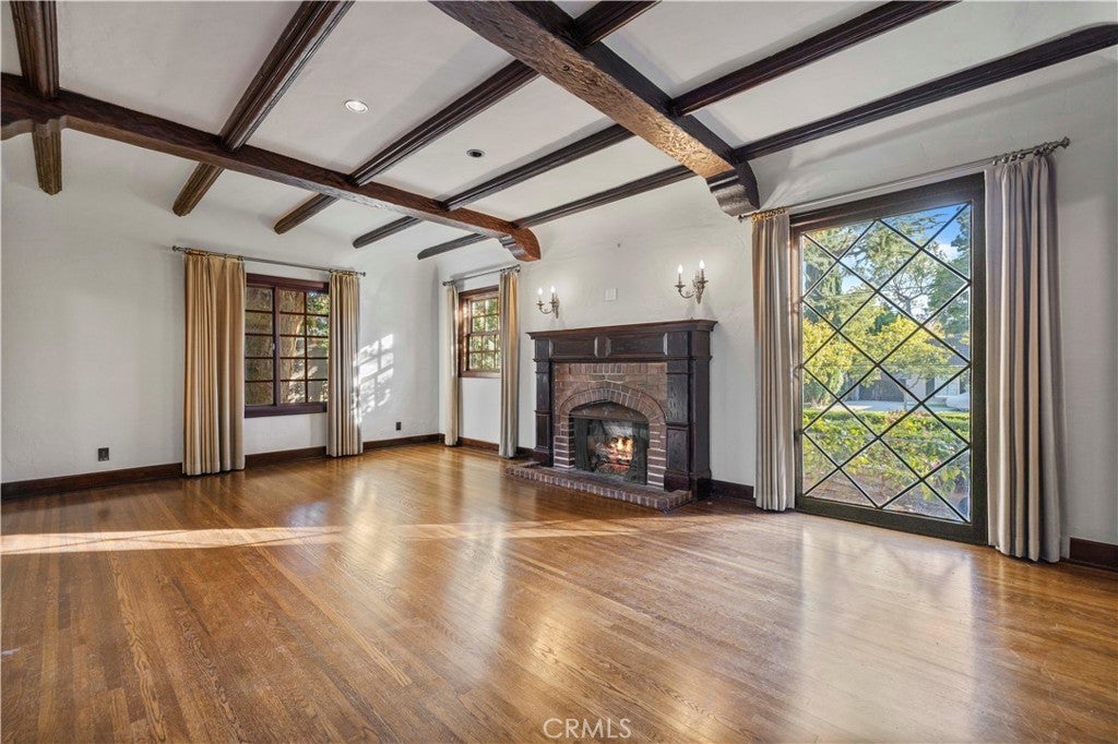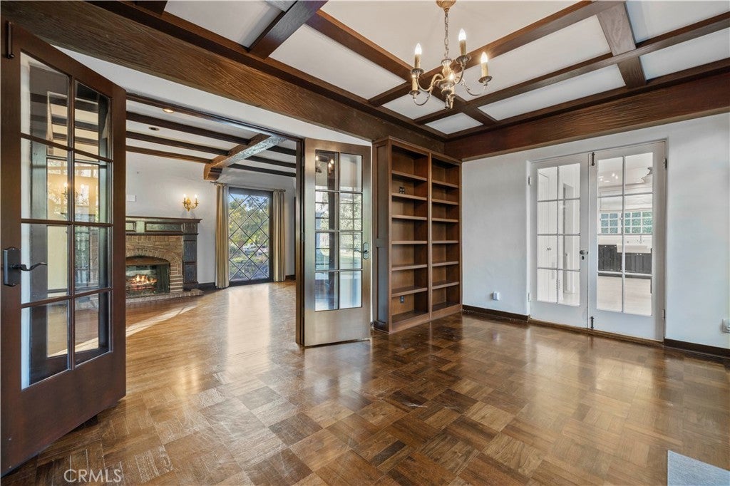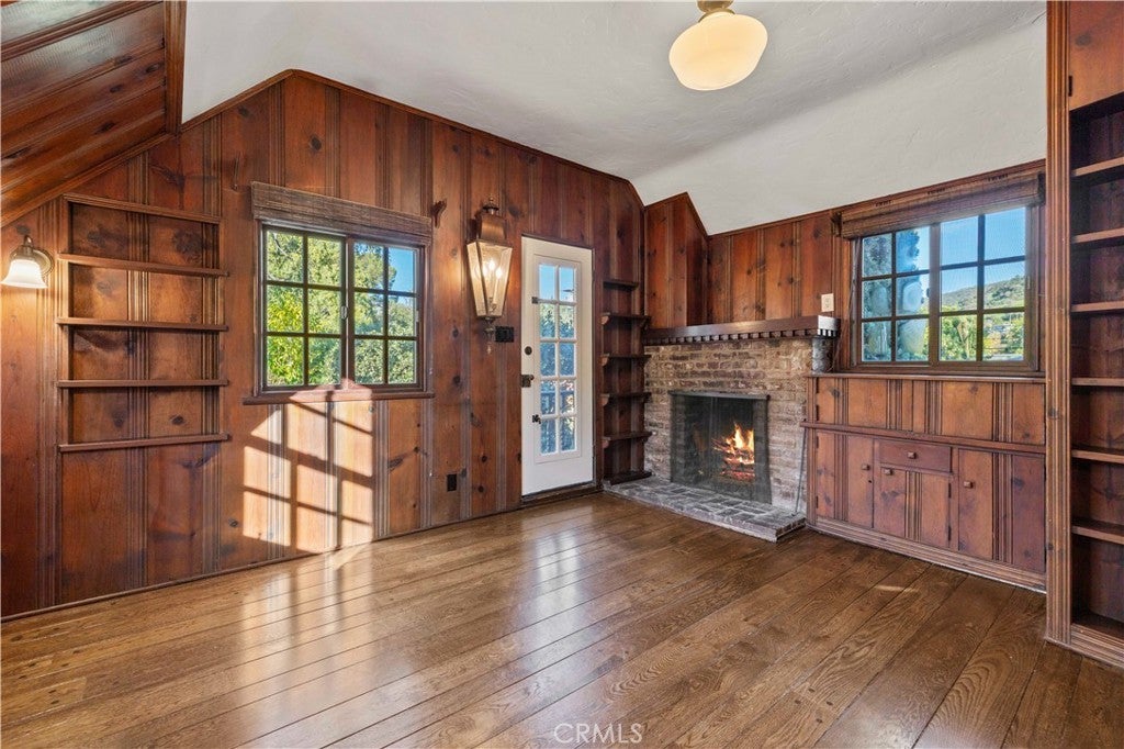 Tudor Estate on 13,400 SF Lot with Pool + Bonus Unit in Glendale’s prestigious Verdugo Woodlands This storybook Tudor blends timeless character with modern comfort. From the moment you arrive, the home’s craftsmanship stands out—original wood beams, rich wood floors and trim, and classic casement windows. A grand formal entry opens to the formal living room with a wood-beamed ceiling and romantic fireplace and continues into a generous formal dining room designed for memorable gatherings. The updated kitchen is both beautiful and functional, featuring high-end Viking appliances, two refrigerators, and a butler’s pantry finished with subway tile and quartz counters. A sunlit breakfast nook with oversized garden windows overlooks the tranquil yard. For everyday living, you’ll appreciate the variety of spaces: a welcoming sitting room with French doors that open to the outdoors, and a large family room anchored by a flagstone fireplace. Upstairs, you’ll find four bedrooms and three baths, including a primary suite with a sitting room, bedroom, walk-in closet, and a private office with an additional fireplace. A secondary suite offers its own walk-in closet and en-suite bath, plus a charming Juliet balcony. The grounds are equally special—manicured gardens, a peaceful fountain, and a pool create an inviting setting for both entertaining and quiet weekends at home. Completing the property: a separate back house/ADU, a gym/bonus room, a 3-car garage, and two basements providing exceptional storage and flexibility. A rare opportunity to lease a distinctive home in one of Glendale’s most sought-after neighborhoods.