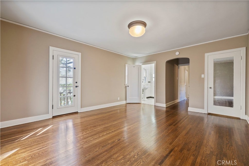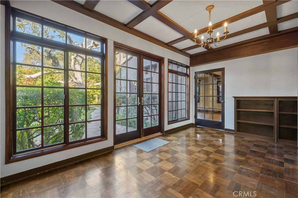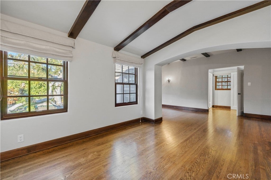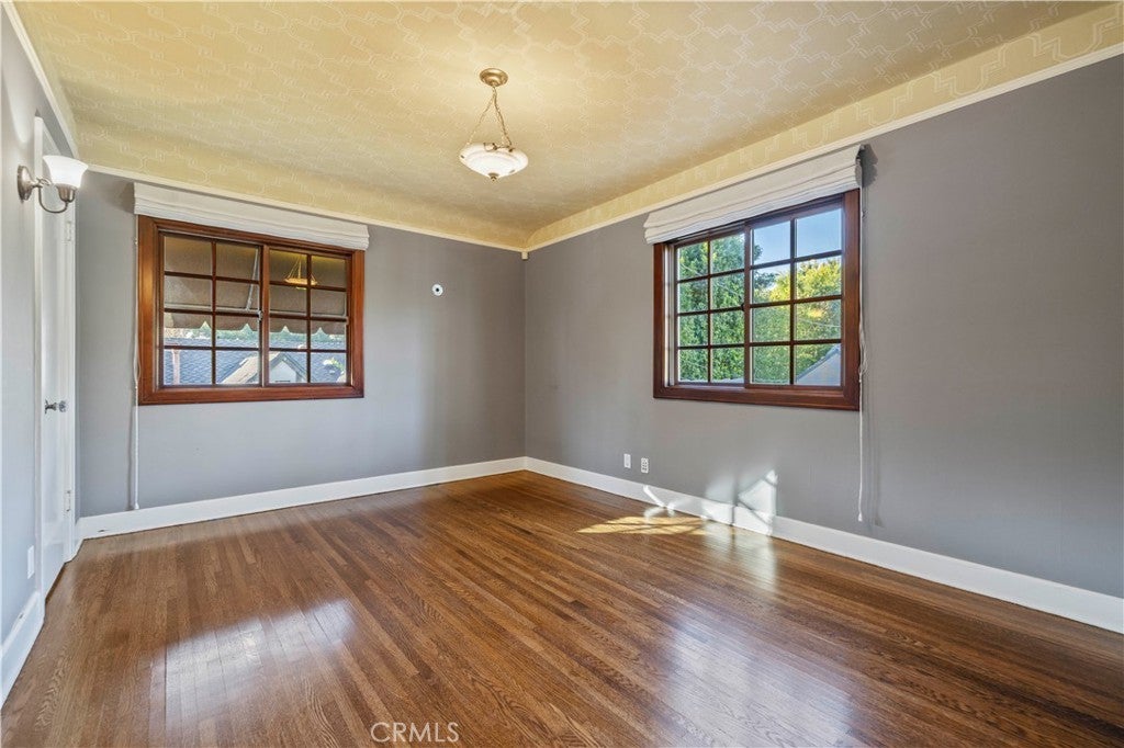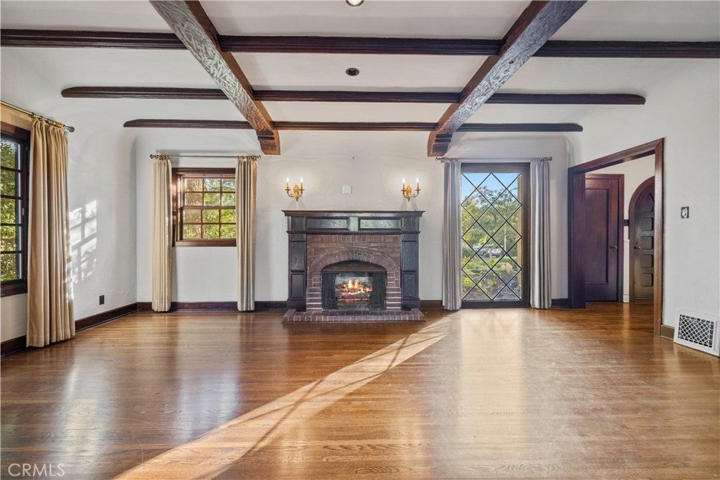 Tudor Estate on 13,400 SF Lot with Pool + Bonus Unit in Glendale’s prestigious Verdugo Woodlands This storybook Tudor blends timeless character with modern comfort. From the moment you arrive, the home’s craftsmanship stands out—original wood beams, rich wood floors and trim, and classic casement windows. A grand formal entry opens to the formal living room with a wood-beamed ceiling and romantic fireplace and continues into a generous formal dining room designed for memorable gatherings. The updated kitchen is both beautiful and functional, featuring high-end Viking appliances, two refrigerators, and a butler’s pantry finished with subway tile and quartz counters. A sunlit breakfast nook with oversized garden windows overlooks the tranquil yard. For everyday living, you’ll appreciate the variety of spaces: a welcoming sitting room with French doors that open to the outdoors, and a large family room anchored by a flagstone fireplace. Upstairs, you’ll find four bedrooms and three baths, including a primary suite with a sitting room, bedroom, walk-in closet, and a private office with an additional fireplace. A secondary suite offers its own walk-in closet and en-suite bath, plus a charming Juliet balcony. The grounds are equally special—manicured gardens, a peaceful fountain, and a pool create an inviting setting for both entertaining and quiet weekends at home. Completing the property: a separate back house/ADU, a gym/bonus room, a 3-car garage, and two basements providing exceptional storage and flexibility. A rare opportunity to lease a distinctive home in one of Glendale’s most sought-after neighborhoods.