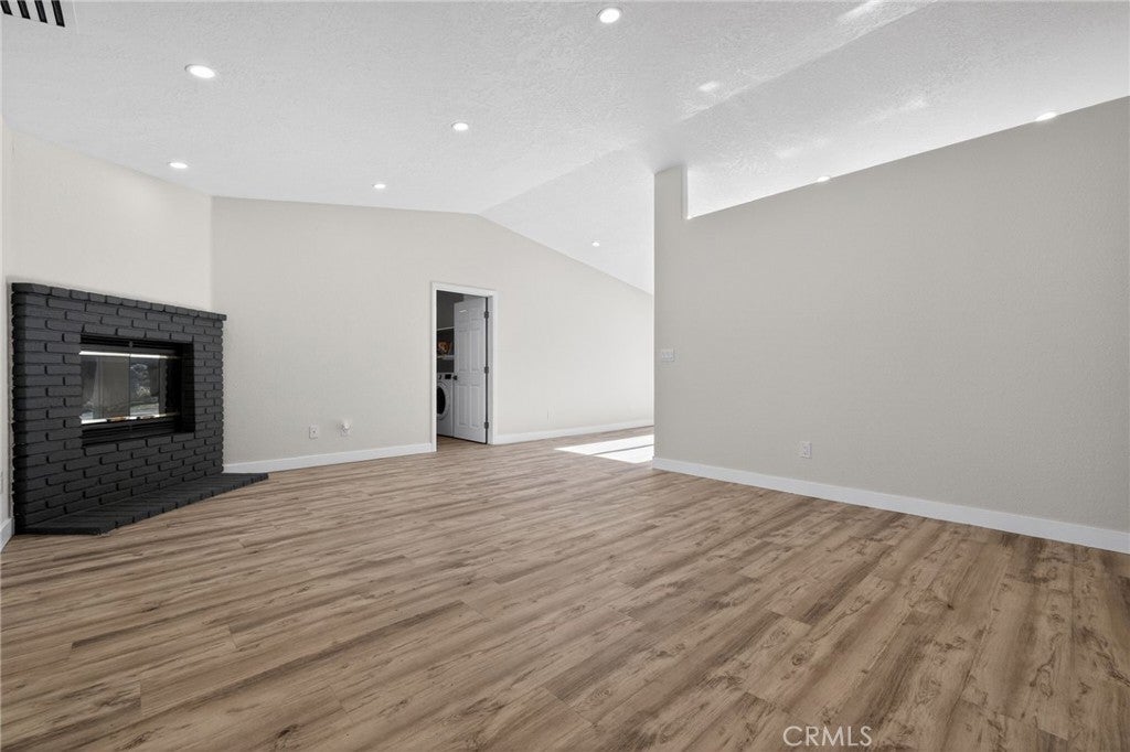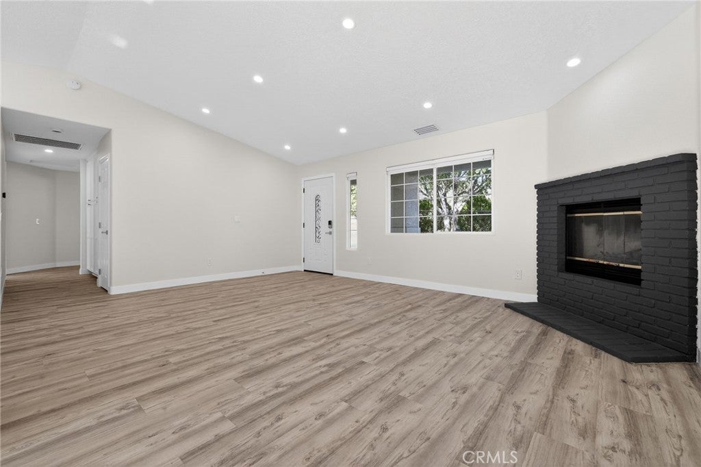 Fully remodeled 3-bedroom, 2-bathroom home offering over 1,500 sq. ft. of living space on an expansive 25,000+ sq. ft. lot. This move-in-ready property features leased-to-own solar panels, a 2-car attached garage, and additional driveway parking. Inside, enjoy newly installed laminate flooring, fresh interior paint, recessed lighting, central A/C and heat, and dual-pane windows throughout. The spacious living room is highlighted by a stunning brick fireplace, creating a warm and inviting atmosphere. The breathtaking new kitchen showcases glossy finish cabinetry, quartz countertops with a waterfall edge, stainless steel appliances (all included), and modern fixtures. Both bathrooms have been newly remodeled with elegant vanities and LED mirrors. Additional conveniences include an in-home washer and dryer. Step outside to a serene backyard featuring a brick fire pit, ample space for entertaining, storing recreational toys, or hosting large gatherings. This property offers the perfect blend of modern upgrades, functionality, and outdoor space.