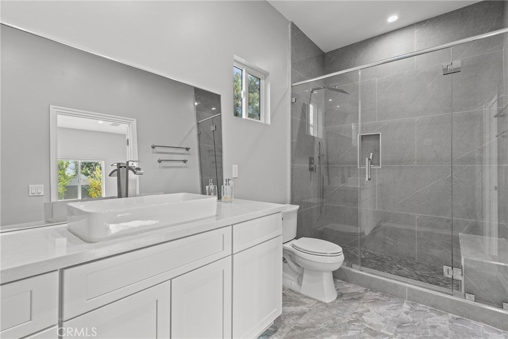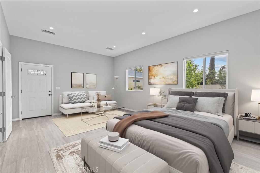A refreshing change from the neighborhood norm. How incredibly fortunate to call this Spanish abode your very own. Rich in character and charm both inside and out, this beautifully reimagined property offers a rare opportunity to enjoy a fully renovated main residence plus a brand-new, detached ADU—each with its own address and delivered vacant. The main house, completely renovated throughout, features 3 bedrooms, 2.5 bathrooms, and 1,649 sq ft of thoughtfully curated living space. A grassy front yard, long brick-accented concrete driveway, and tranquil front porch set the tone for the home’s timeless Spanish architectural appeal. Inside, gorgeous white tile floors, elegant arches, smooth ceilings, recessed lighting, and a crisp, modern color palette create a seamless flow of warmth and sophistication. The light-filled living room is anchored while the stunning kitchen showcases custom cabinetry, granite countertops, and stainless steel appliances. The primary retreat impresses with soaring ceilings and a private, spa-inspired bath featuring resort style finishes with separate shower. A large formal dining area and dedicated office or playroom add versatility, while two additional spacious bedrooms and tastefully upgraded baths complete the main residence. Outside, expansive 7,800 plus lot with grassy rear grounds and a large courtyard provide the perfect setting for entertaining, play, or relaxation. A spectacular mature tree along the eastern boundary hosts a daily chorus of birds, creating a serene and memorable outdoor experience. Adding exceptional value is the brand-new ADU completed in 2021, approximately 850 sq ft, with its own address. This single-story guest house features one bedroom, a full bathroom, living room, full kitchen, and in-unit laundry, making it ideal for extended family, guests, rental income, or a private home office. Located near Lake Balboa, this property is perfectly suited for an owner-user looking to live in one and rent the other, or for an investor seeking a strong income-producing asset with two fully independent residences. The countless upgrades throughout make this a truly turnkey offering. This is one you don’t want to miss.