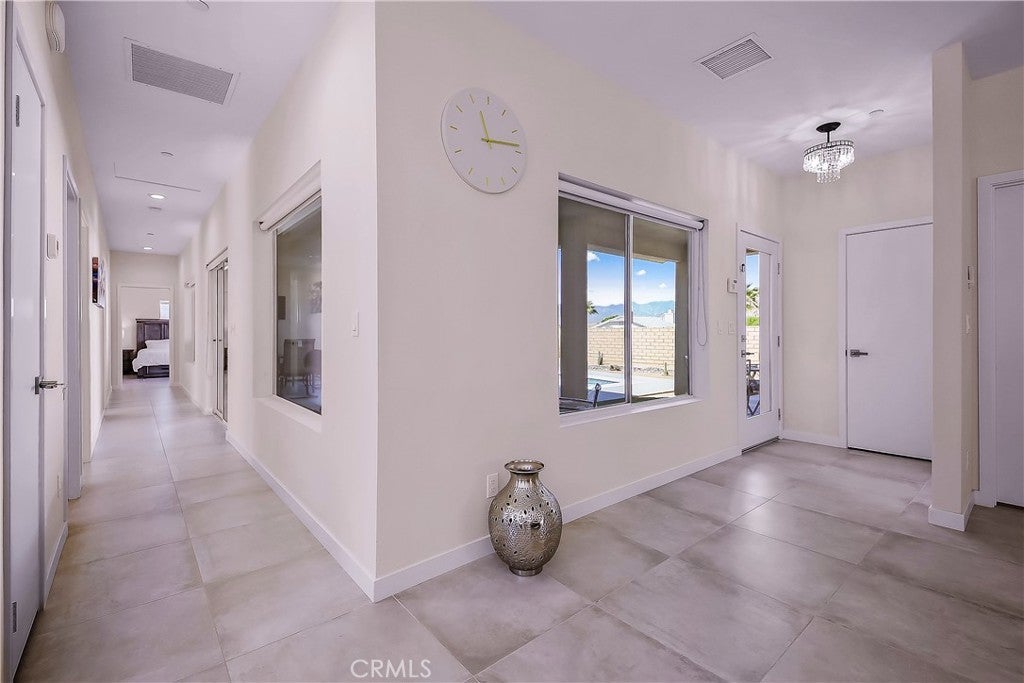 Perched on a hilltop with sweeping views for miles, this striking modern home—NEWLY COMPLETED in 2022—offers the perfect blend of style, comfort, and income potential. This 3-bedroom, 2-bath residence is fully furnished, move-in ready, and ideal for a primary residence, start-up home, or income-generating property. NO HOA. Designed with an open floor plan and natural light, the home seamlessly connects the kitchen to the living area and opens to a beautifully lit, inviting front courtyard. Here you’ll find a heated pool and spa, powered by top-of-the-line Hayward natural gas equipment, where you can unwind while enjoying breathtaking views of Mt. San Jacinto. The SOLAR PANELS are FULLY PAID OFF, adding long-term energy savings. The low-maintenance landscaping features drought-tolerant plants and ground cover, perfect for desert living. Quality and attention to detail are evident throughout, including 9-foot ceilings, ceramic tile flooring, blackout shades, custom shower doors, and a high-end alarm and camera system. The serene primary suite features a clerestory window, offering stunning sunrise and sunset desert views. From the moment you step onto the property, you’ll recognize this home as an exceptional desert retreat—beautifully finished inside and out, thoughtfully designed, and ready to enjoy.