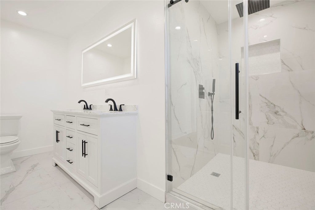Beautifully remodeled home with PAID OFF SOLAR (9055 Forbes) with a newly built ADU, completed in 2025, offering a combined 2,700 sq ft of living space. The main residence spans approximately 2,000 sq/ft and features 5 spacious bedrooms and 2.5 bathrooms. Highlights include a brand-new breath taking kitchen with sleek countertops, recessed lighting, laminate flooring throughout, updated bathrooms, a remote-controlled fireplace, dual-pane windows, tankless water heater, new roof, and a new HVAC system. The detached ADU (9075 Forbes), approximately 700 sq ft, is newly constructed and includes a well-sized kitchen, 1 bedroom, and 1 full bathroom—ideal for extended family, guests, or rental income. Both the main home and ADU offer separate entrances for added privacy. Step outside to your private backyard oasis, complete with a pool and jacuzzi, plus ample space for entertaining and enjoying summer gatherings. This property offers the perfect blend of modern upgrades, flexibility, and resort-style living.