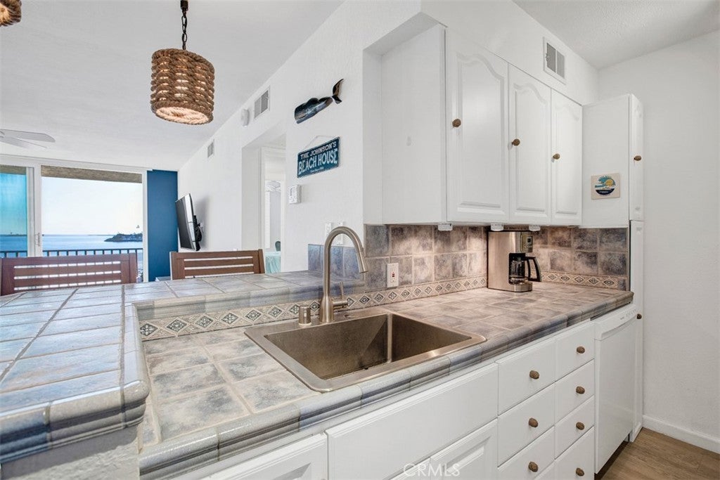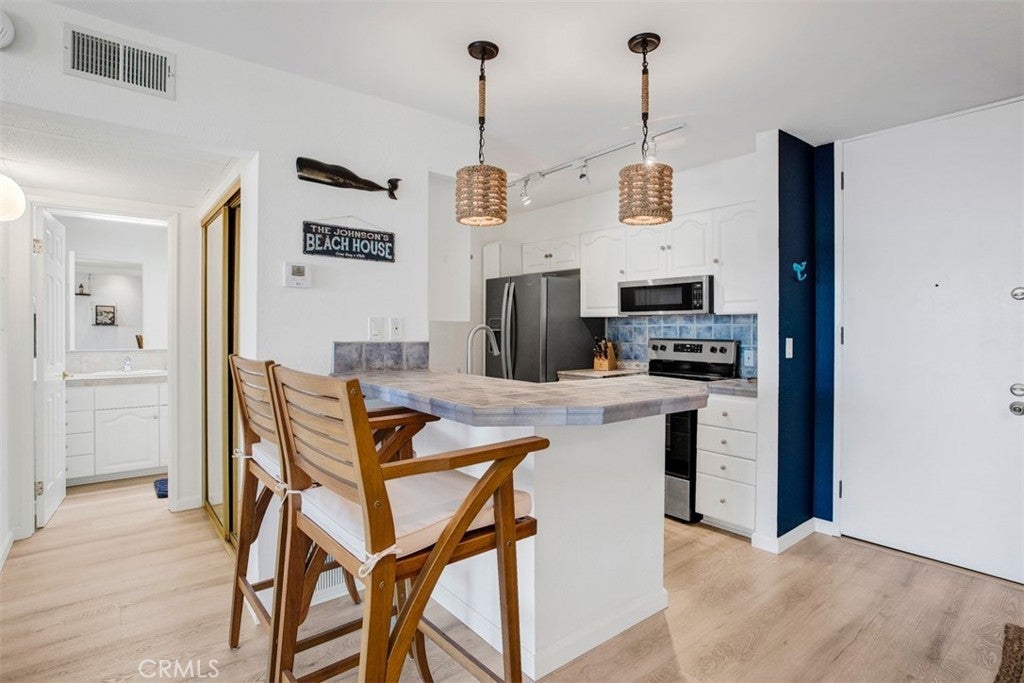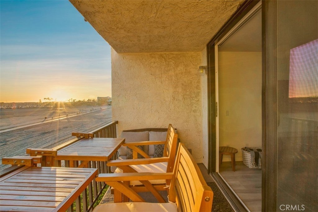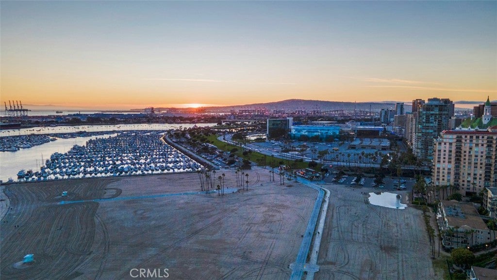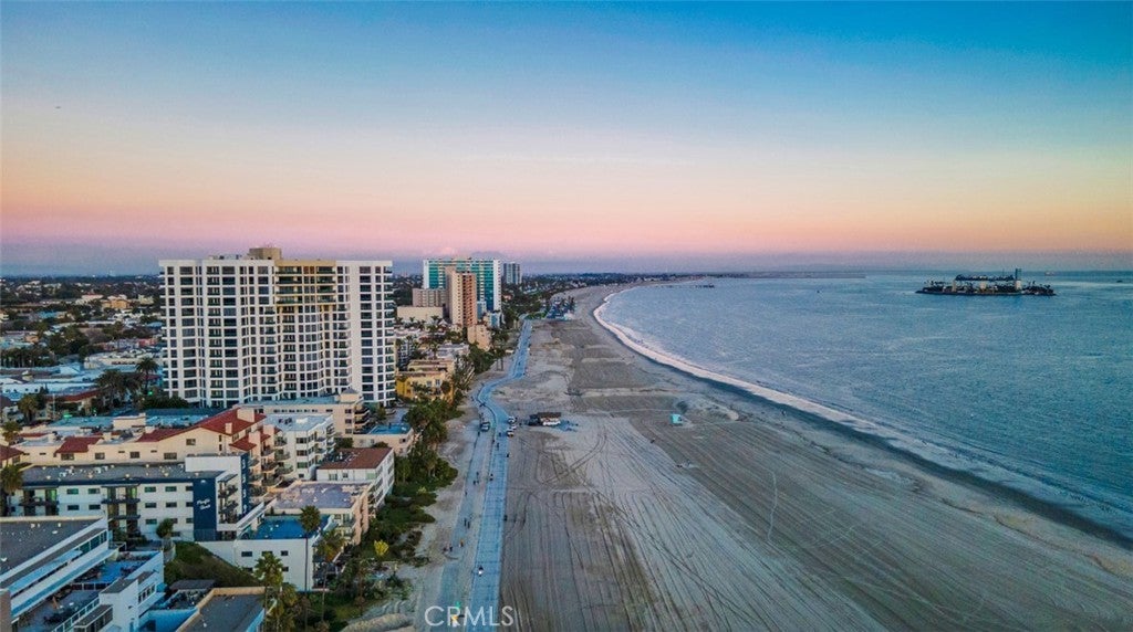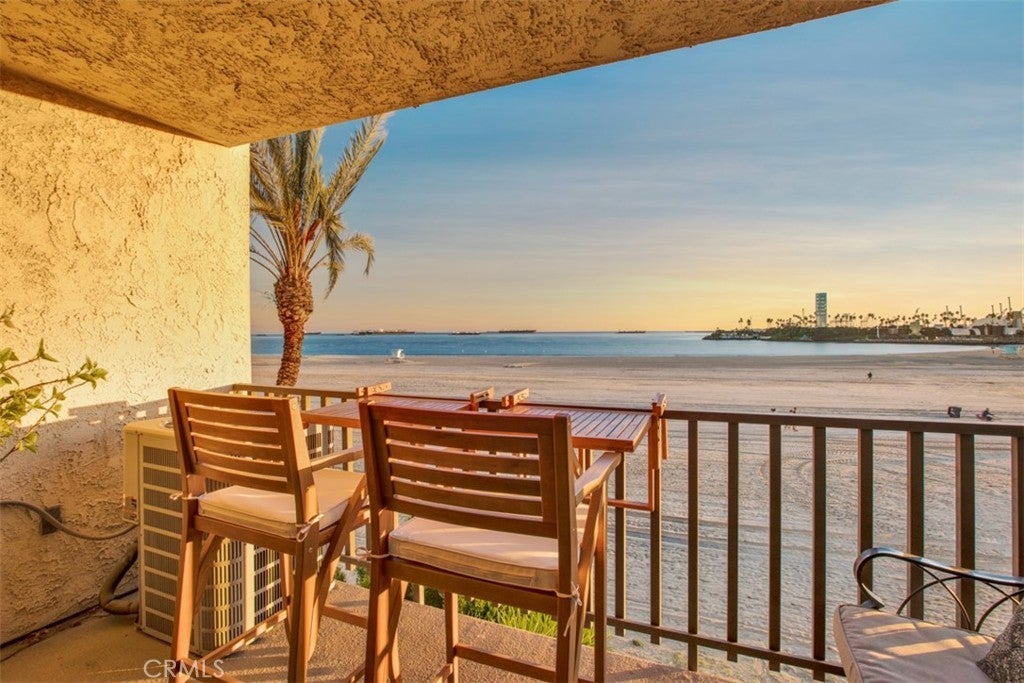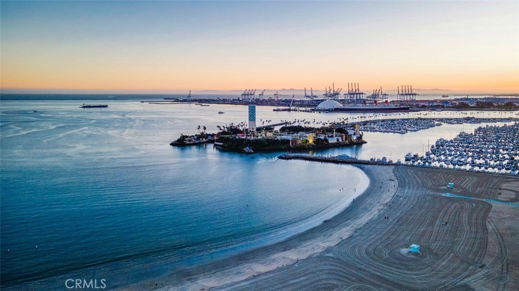 The quintessential beachfront lifestyle. Experience breathtaking ocean and Queen Mary vistas from the comfort of your home. This 2nd level corner unit condo is located in the heart of Long Beach's exciting nightlife, offering views of the pacific ocean with The Queen Mary, Island Grissom and Island White as the backdrop. Step in the front door and you're immediately taken back by the unobstructed views of the ocean. With a modern nautical theme, you're greeted by newer wood-like flooring, tall ceilings and a bright and airy open floor plan. To the right, a well-appointed fully equipped Kitchen including a microwave, dishwasher, stove, and refrigerator. Enjoy your dining at the breakfast bar, dining area or outside on the balcony. Boasting one spacious bedroom with a walk-in closet and an oversize window to take in the ocean views and enjoy the breeze and sounds of crashing waves. Generous sized bathroom with double sink vanity and tile countertop. The spacious living area with a double pane slider brings in an abundance of natural light and leads out to your private balcony where you can relax and take in expansive ocean panoramas! As the sun starts to set your scenery changes as Grissom Island and the Queen Mary light up! Plenty of community amenities such as laundry facilities, a pool, spa, gym, sauna, and a sundeck offering sweeping ocean views. Take the bike path from your unit up to Shoreline Village or down to Bayshore Park. Minutes from the property you can dine at Gaucho Beach, the Queen Mary, 555 and some of SoCal's best dining. Enjoy endless activities from the Terrace Theatre, The Aquarium, Grand Prix, Museum of Arts, and so much more!