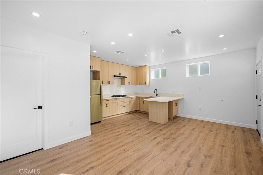 Brand new ADU | 1 Bed/1.5 Bath/ 570 Sqft | Gated | Pool | Laminate Floors | Recessed Lighting | Central A/C & Heat | Alley Access | 1 Car Off-Street Parking | No Pets | Appliances include: Refrigerator, Gas Stovetop, Washer & Dryer | Utilities are split between tenants | 12 month lease then month to month. First months rent + security deposit due upon signing. Renters insurance is required.