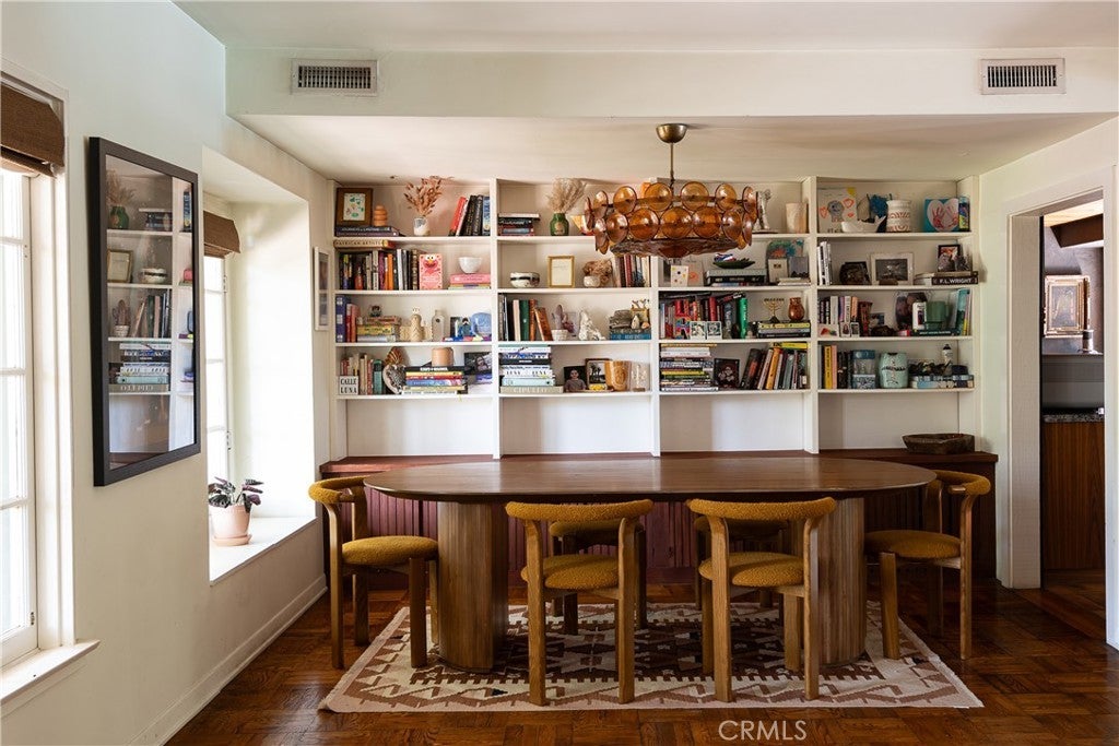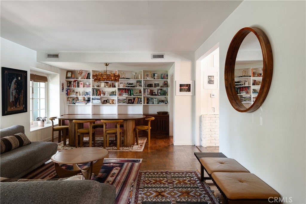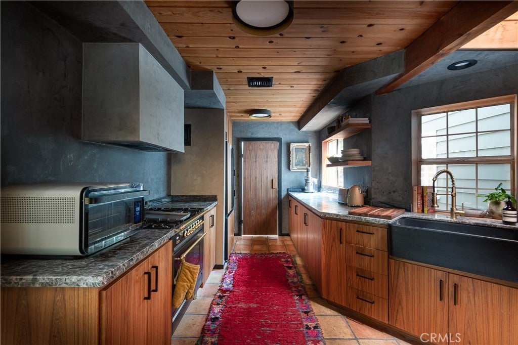 Tucked away on one of the most beautiful, tree-lined streets in the highly sought-after Toluca Woods neighborhood, 4936 Strohm Avenue is a charming English cottage–style residence offering warmth, privacy, and timeless appeal. The ivy-draped exterior, warm façade, and manicured front lawn shaded by mature trees create an inviting first impression and immediately set the tone for this peaceful retreat. Inside, the home blends classic character with a fresh take on modern California living. French windows and doors fill the interiors with abundant natural light, while richly toned parquet wood floors add warmth and texture throughout the main living areas. The thoughtful layout strikes a balance between comfort and style, making the home equally suited for everyday living and entertaining. Whether enjoying a quiet evening by the fireplace, sharing meals with friends, or gathering for special occasions, the living spaces feel welcoming and effortless. The kitchen serves as the true heart of the home, featuring golden-toned fixtures, timber cabinetry, and timber ceilings that echo mid-century influence, paired with dramatic designer walls for contrast. Generous counter space, a conversational layout, and high-end appliances make this kitchen ideal for gourmet cooking, casual meals, or entertaining. Just off the kitchen, the family room offers a relaxed yet refined setting anchored by a statement fireplace with a striking black surround—perfect for movie nights, game days, or unwinding at the end of the day. Step outside to a private backyard oasis designed for year-round enjoyment. The outdoor space features a sparkling pool, pergola, surrounding deck, and a hot tub—ideal for alfresco dining, entertaining, or quiet evenings under the stars. Lush landscaping and privacy enhance the tranquil atmosphere, creating a true extension of the home’s living space. An attached artist’s studio adds exceptional versatility, offering its own entry, living area, and loft-style sleeping space. This flexible bonus space is well suited for guests, a home office, creative pursuits, or extended stays. Ideally located in the heart of Toluca Lake, the property offers the charm of a close-knit neighborhood while remaining close to local cafés, parks, studios, and boutique shops, with easy access to Studio City, Universal City, and greater Los Angeles. A rare Toluca Woods offering combining character, flexibility, and an exceptional residential setting.
