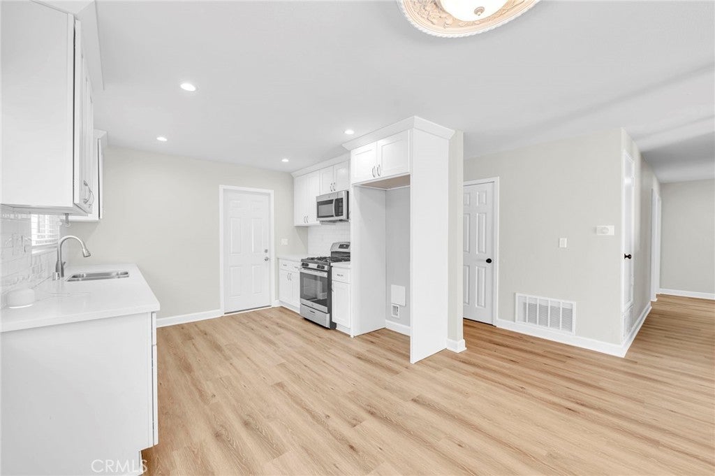 Welcome to this charming corner-lot home in the heart of peaceful Santa Clarita! From the moment you arrive, you’ll be greeted by a vibrant, lush green lawn and a home that shines with upgrades inside and out. Step into the living room featuring new flooring, flowing seamlessly into the fully renovated kitchen. The kitchen boasts stylish white shaker cabinets, stainless steel appliances, a crisp subway tile backsplash, newer countertops, and updated plumbing fixtures—perfect for the modern chef. A spacious adjoining dining area makes hosting friends and family a breeze. Both bathrooms have been tastefully upgraded with classic vanities, tile flooring, re-tiled showers, and newer plumbing and lighting fixtures. The bedrooms are bright and airy with ample closet space, plush carpeting, and plenty of natural light. This home is loaded with upgrades, including **newly painted interior, updated windows, newer AC and heating units, an upgraded roof, updated rain gutters, upgraded electrical panel, backyard water pump, and a full security system surrounding the property** for added peace of mind. Outside, enjoy your private oasis—complete with a pergola ideal for outdoor dining, entertaining, or relaxing in the sunshine. Surrounded by tall trees, the backyard offers ample space for gardening or colorful flower beds. Additional highlights include an attached two-car garage and a prime location close to Central Park, hiking trails, dining, entertainment, and more. This Santa Clarita gem truly has it all—don’t miss your chance to make it yours!