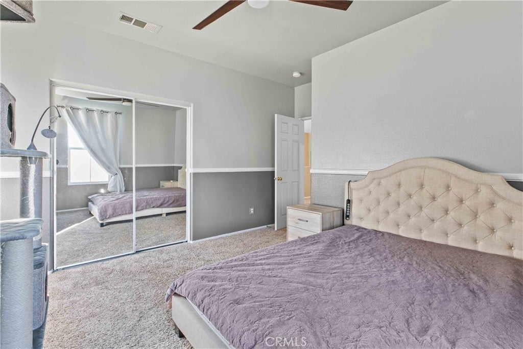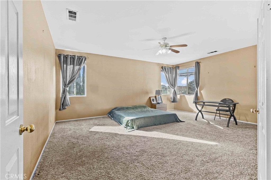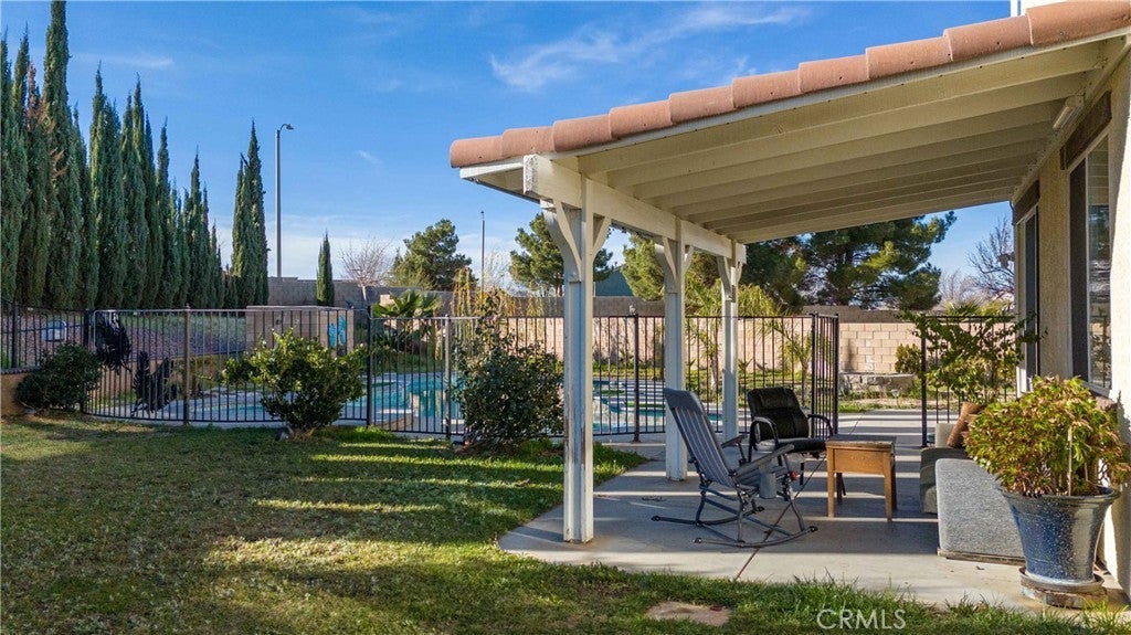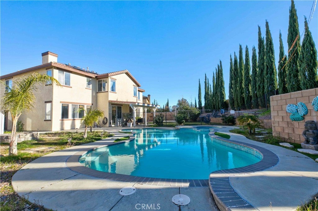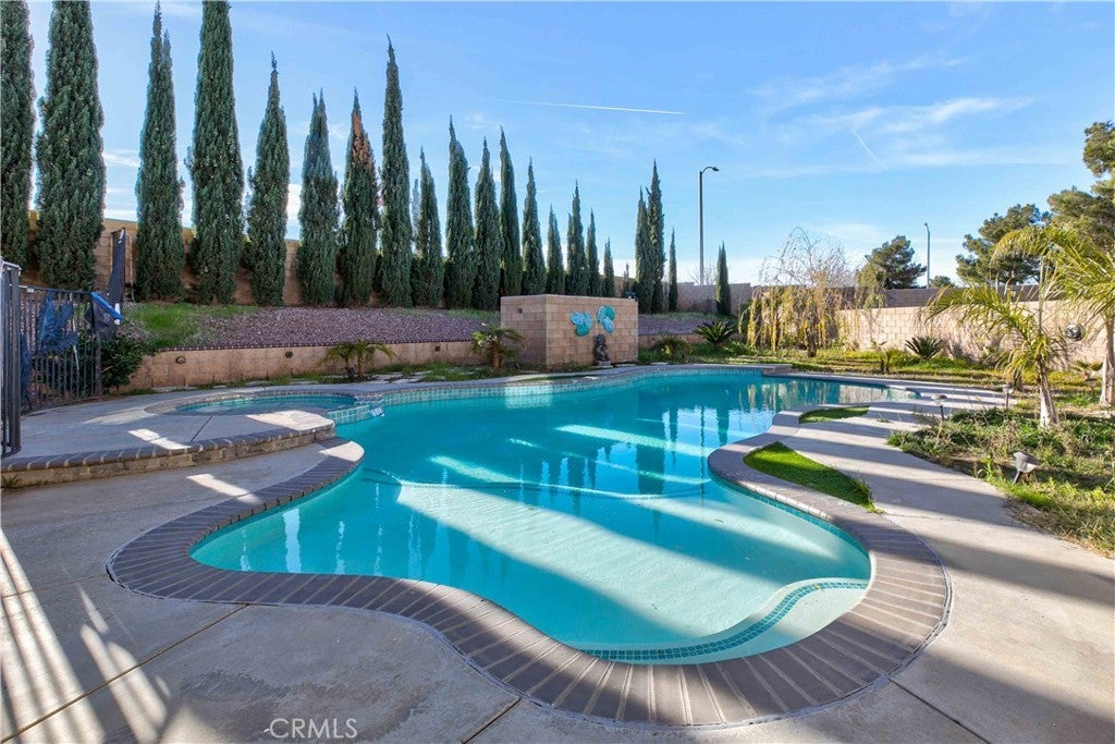 Located in the desirable Rancho Vista community of West Palmdale, this beautiful 5-bedroom, 3-bath home offers 3,256 sq ft of living space on an expansive 11,817 sq ft lot. The bright entry opens to a formal living and dining area with soaring ceilings and abundant natural light. The well-designed floor plan includes a downstairs bedroom and full bath perfect for guests or multi-generational living. The spacious kitchen offers ample cabinetry and opens to a large family room with a fireplace, overlooking the backyard and pool. Upstairs features four generously sized bedrooms, including a primary suite with dual walk-in closets and a primary bath with a soaking tub, separate shower, dual sinks, and a dedicated makeup/dressing area. The entertainer’s backyard includes a pool and spa, covered patio, fire pit, garden area, and basketball court. Solar panels provide energy efficiency, and the home is conveniently located near the Antelope Valley Mall, shopping, dining, parks, and Rancho Vista Golf Club—making this a rare opportunity in one of West Palmdale’s most sought-after communities.