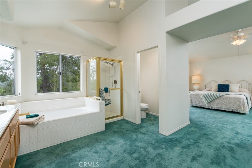 Ceiling Fan(s), Cathedral Ceiling(s), Separate/Formal Dining Room, Eat-in Kitchen, Bedroom on Main Level, Entrance Foyer, Primary Suite, Walk-In Closet(s), Stone Counters
