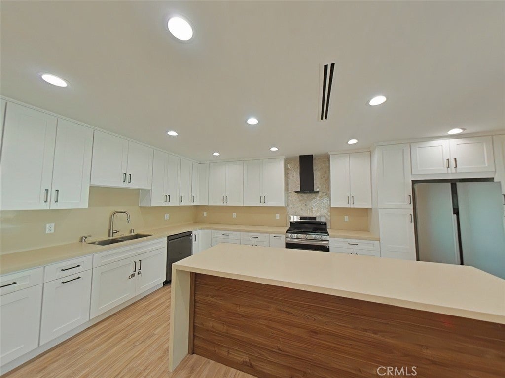 This **beautifully remodeled home** offers modern comfort and generous space with 4 bedrooms and 4 full bathrooms, spanning approximately 2,700 square feet on a large 0.30-acre lot. The interior showcases an open, airy layout with wide-plank flooring, smooth ceilings, and recessed lighting throughout. The expansive living area is filled with natural light and features a sleek granite in-wall fireplace, creating an ideal setting for relaxing or entertaining. Sliding glass doors provide seamless access to the backyard. The chef’s kitchen is both stylish and functional, featuring custom white shaker cabinetry, quartz countertops, and a large center island with warm wood accent paneling. Stainless steel appliances, a designer backsplash behind the range, ample storage, and recessed lighting complete this modern space. Bathrooms are tastefully updated with glass-enclosed walk-in showers, designer tile flooring, contemporary vanities, and modern fixtures. Two spacious primary suites offer private bathrooms with dual-sink layouts, while all four bedrooms include walk-in closets. Additional upgrades include newer plumbing and newer electrical, newer central heating and air, indoor laundry, newer windows, modern interior and exterior doors, and smart-home features including Nest and camera system. The outdoor areas are equally impressive, offering with mature landscaping, privacy-enhancing ficus hedges, and fruit trees—providing ample room for outdoor enjoyment. This home delivers quality, space, and modern design throughout. Conveniently located within walking distance to CSUN, this exceptional rental opportunity is a must-see.