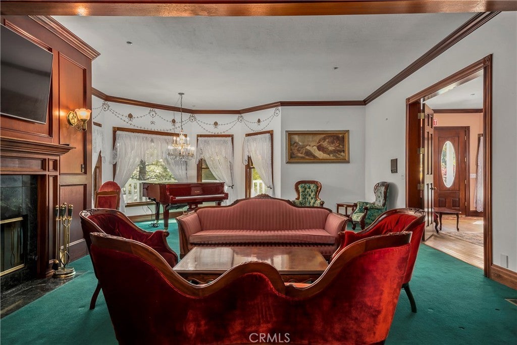 Welcome to Wrightwood Castle—only 75 minutes from Los Angeles and just minutes to Mountain High, L.A.’s closest snow destination. Behind gates and whispering pines sits a one-of-a-kind mountain estate blending old-world elegance with modern function, showcasing artisan hand-painted details and rich real-wood finishes—no shortcuts, no builder-grade. The main level makes a grand first impression with an expansive entry hallway that sets the tone for the home’s scale and character. From here, flow into a cinematic library and a formal dining room with fireplace, then into a true chef’s kitchen featuring double sinks, a statement hood, a professional-grade range/grill, and a walk-in pantry. A summer room offers the perfect setting for casual meals with mountain views. Entertaining continues with a full bar and a stunning living room anchored by a fireplace and grand piano. Completing this level are a main-floor bedroom with a full bath and a stylish powder room. Elevator access offers effortless travel between floors. The basement is built for fun and function with an arcade-style game room featuring a pool table, a gym with a full bath, a laundry room, and a private room ideal for maid’s quarters or storage. The second level features six bedroom suites with six full baths—four with fireplaces and two with spa-style jetted tubs—including a primary suite with a separate sitting/living area and walk-in closet. The third level adds an additional bedroom with a walk-in closet, plus a spacious bonus area ideal for a home theater, lounge, studio, or flexible space for lifestyle or business needs. Step outside to the wraparound patio (first floor) to enjoy breathtaking mountain views, or soak under the stars in the brand-new, pool-sized spa. Car lovers, entrepreneurs, and collectors will appreciate the detached 6-car garage, 1,600 SF of storage above it, and a shed behind the garage—excellent for gear, equipment, or business inventory. This home places year-round adventure at your doorstep with nearby skiing, hiking, biking, fishing, camping, and zip-lining. Investor Potential includes short-term rental use, corporate and wellness retreats, filming/content creation, and an events venue, plus potential for RCFE/assisted living, independent living, recovery/rehab, or sober living use. Abundant storage throughout the property also offers strong potential for an e-commerce warehouse-style setup. Schedule your private tour today—this one must be seen to be believed.