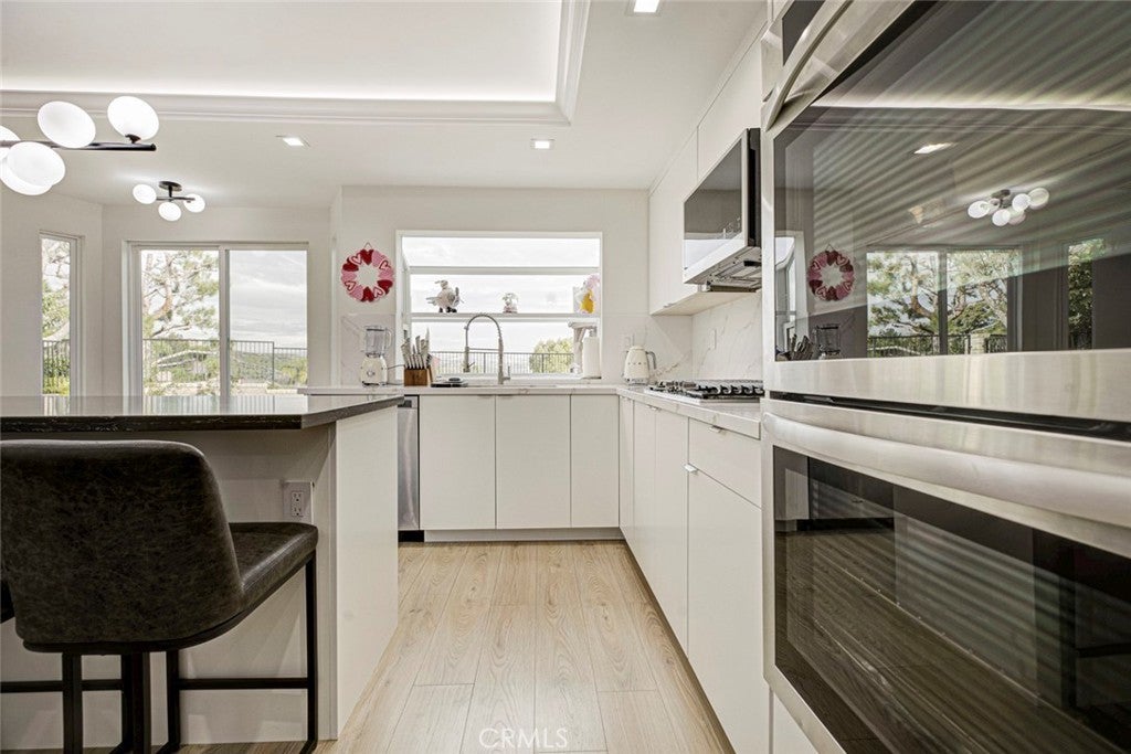 Set above the street and designed with intention, this 5-bedroom, 3-bath residence spanning approximately 2,354 sq ft delivers a level of design, refinement, and energy independence that is rarely seen in Santa Clarita. The home has been designer renovated with a clean, modern aesthetic and custom solutions throughout. The kitchen and main living spaces are thoughtfully reimagined with cohesive materials, high-end finishes, and intelligent design choices that emphasize light, flow, and functionality. Every element feels deliberate. The result is a refined luxury environment that stands apart from typical renovations and reflects a truly unmatched level of taste and execution. The backyard opens to beautiful, expansive views — when standing with your back to the house, the landscape unfolds in front of you, creating a calm, open atmosphere that enhances everyday living and entertaining. The yard is clean, well-kept, and intentionally simple, allowing the views to remain the focal point while offering flexibility for future personalization. A powerful solar system with a Tesla battery backup (up to 3 days of power) will be delivered paid off, offering true energy independence and peace of mind. The home features 5 bedrooms and 3 full bathrooms, high ceilings, recessed lighting, a 2-car garage, and a tile roof. There is no HOA and no Mello-Roos, supporting long-term value and ease of ownership. Located on Kenton Lane in Santa Clarita (91350) approximately a two-minute walk to the seasonal Wakefield Winter Wonderland. This home blends thoughtful design, modern efficiency, and open-view living in a way that is both rare and difficult to replicate.
