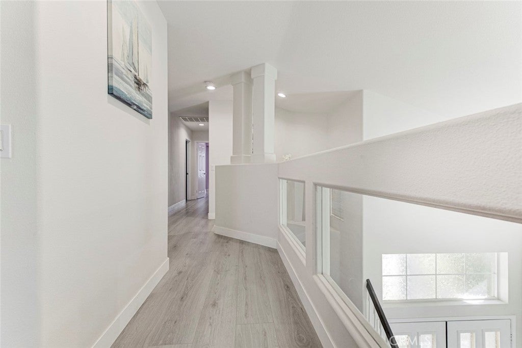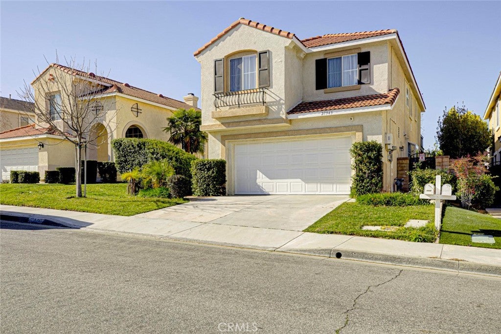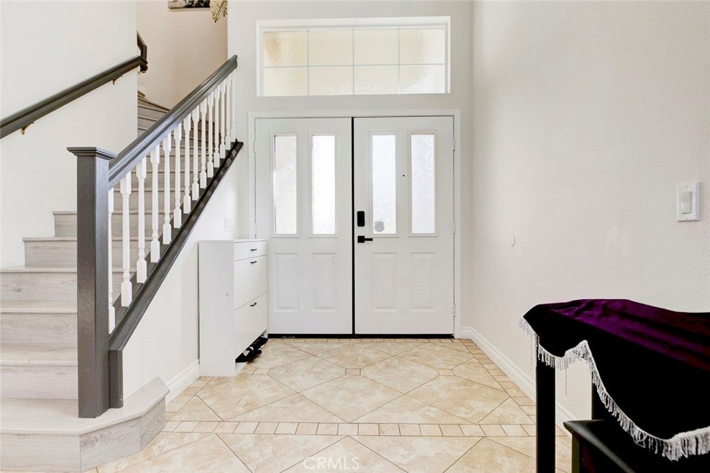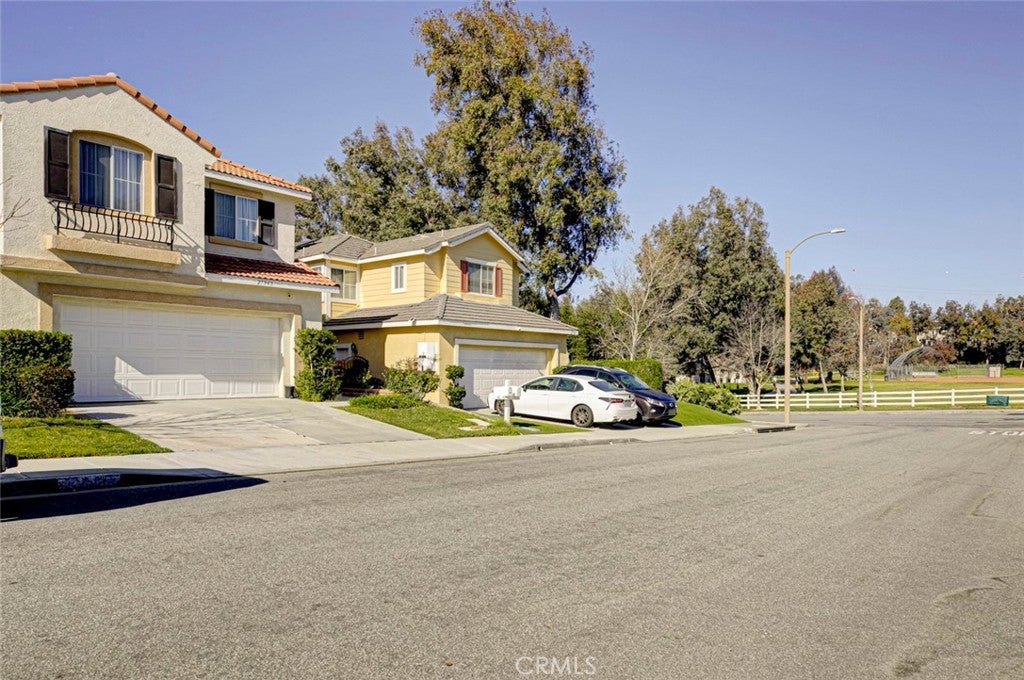 Charming home filled with breathtaking details throughout with active Solar Panels!. Enter through elegant French doors into a bright and inviting interior featuring tile flooring, high ceilings, recessed lighting, abundant natural light, and a cozy family room fireplace. The chef’s kitchen is complemented by a designated laundry room (units included!), while the staircase leads to the second floor with stylish laminate flooring. All four bedrooms are conveniently located on the second level, offering privacy and comfort. The main level includes a guest bathroom. The spacious primary suite features its own private bathroom with a jacuzzi tub, stand-up shower, and access to a large balcony. Step outside to enjoy the covered outdoor balcony with recessed lighting, overlooking a backyard oasis complete with fruit trees, palm trees, and a private jacuzzi. The community offers resort-style amenities including a tennis court, three swimming pools, and a recreation room.