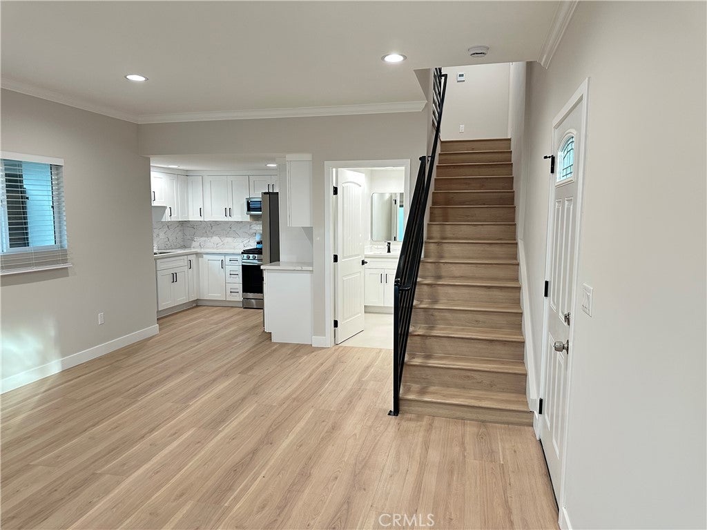This newly rebuilt 3 bedroom 2.5 bathroom home is ready for the picky tenants. This home (2025) offers modern design, quality finishes, and a functional floor plan ideal for comfortable living. The first level features a spacious and bright living room that flows seamlessly into a brand-new kitchen appointed with quartz countertops, custom cabinetry, stainless steel appliances, and contemporary finishes. A convenient powder room (½ bath) is also located on this level. Large sliding glass doors open to a private covered patio and backyard, creating an ideal indoor–outdoor living experience. The second level includes a well-appointed primary suite with a luxurious walk-in shower featuring designer tile and a frameless glass enclosure. Two additional bedrooms are also located on this level; all rooms are bright and thoughtfully designed. Newly remodeled full bathroom features a quartz vanity, modern fixtures, and designer finishes. The home includes in-unit laundry with a brand-new stacked washer and dryer, conveniently located upstairs.