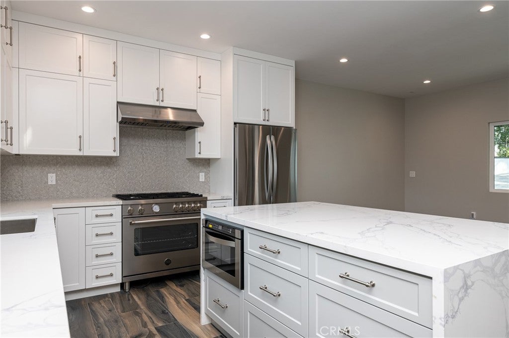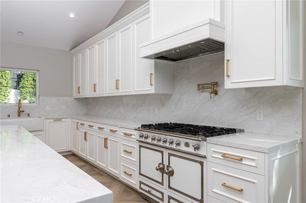 Nestled in the Foothills of La Crescenta, this newly completed French Modern estate offers refined elegance, privacy, and luxury living at its finest. Behind a private gate, you’ll discover serene grounds surrounded by mature fruit trees and tranquil landscaping. The main residence spans approximately 5,000 square feet with an open floor plan designed for both comfort and sophistication. Inside, Italian flooring flows throughout, leading you into a stunning chef’s kitchen featuring a La Cornue built-in range, quartz countertops, and an expansive kitchen island perfect for entertaining. With 6 bedrooms and 5 bathrooms, every detail has been thoughtfully crafted, from the custom finishes to the seamless indoor-outdoor living experience. Completed in 2023, this home exemplifies quality craftsmanship and modern elegance—every inch, from the interior design to the professionally landscaped grounds, reflects meticulous attention to detail. Adding to the appeal is a detached guest house offering 1,220 square feet of stylish living space, complete with 2 bedrooms and 2 bathrooms, its own address, and separate utilities—ideal for extended family, guests, or rental opportunities. Located within the award-winning La Crescenta Blue Ribbon school district, this exceptional property blends timeless European charm with modern California living.