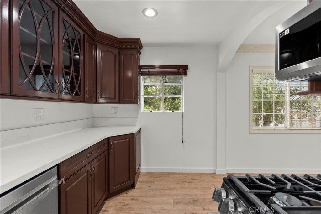 Versatile Dual-Living Home in Northridge Unique single-family residence featuring two fully independent living spaces, each with a private entrance, kitchen, living area, bedrooms, and bathroom—ideal for multi-generational living or flexible use. Front Unit (Approx. 790 SF): 2 bedrooms, 1 bath, central HVAC with new system and HEPA filters, hardwood floors, recessed lighting, washer/dryer, and kitchen with gas range, dishwasher, and refrigerator. Rear Unit (Approx. 738 SF): 2 bedrooms, 1 bath with standing shower, independent split HVAC, kitchen with gas range and microwave, custom tile and wood flooring. Property highlights include a brand-new roof, insulation, plumbing, electrical system, tankless water heater, custom cabinetry and closets, European tile finishes, smart home features, gated entry, security system, and automated sprinklers. Spacious concrete patio, carport parking for 3–4 vehicles plus street parking. Owner pays water and gardening. One small pet may be considered. Additional Note: A separate ADU is located at the rear of the property and is leased independently. Flexible tenant options welcome.