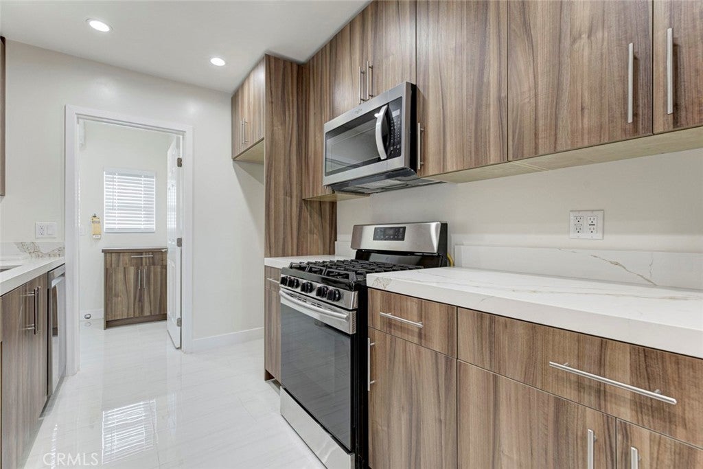 Beautifully fully remodeled single-family home for rent in North Hollywood, offering 3 bedrooms, 2 bathrooms, and approximately 1,200 sq ft of living space. This bright and modern home features recessed lighting throughout, an updated, stylish kitchen with contemporary finishes, and a clean, open layout perfect for comfortable living. Step outside to a private backyard with a sitting area and patio, ideal for relaxing, entertaining, or enjoying outdoor meals. Every detail has been thoughtfully upgraded, creating a fresh and move-in-ready residence that blends modern design with everyday functionality. Conveniently located near shopping, dining, and major freeways, this North Hollywood gem is ideal for those seeking a turnkey rental in a desirable area.