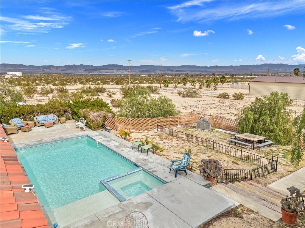Spacious and full of potential, this beautiful home for sale in Twentynine Palms offers 3 bedrooms and 3 bathroom with 3,168 sq. ft. of living space designed for comfort and versatility. Situated on a generous lot with plenty of room to grow, the property features a large driveway with ample parking, making it perfect for hosting guests or accommodating multiple vehicles. Inside, you’ll find expansive living areas filled with natural light, ideal for entertaining or relaxing in style. Step outside to enjoy your private backyard retreat complete with a sparkling pool, rejuvenating jacuzzi, and covered patio, perfect for year-round outdoor living. Equipped with solar for energy efficiency and cost savings, this property also presents an incredible income-generating opportunity, whether as a short-term rental or investment home. With space, functionality, and resort-style amenities all in one, this Twentynine Palms gem is a must-see.