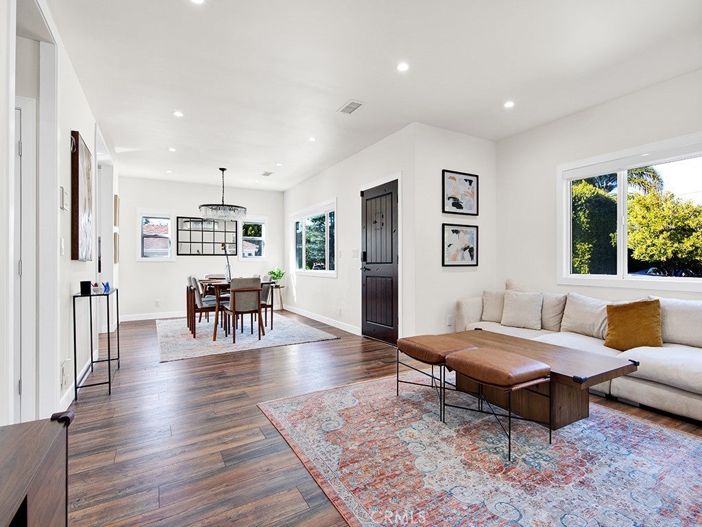 Beatifully remodled home located in one of the most desirable parts of North Hollywood. Step inside this warm and inviting open floor plan with modern flooring, recessed lighting, dual pane windows and a cozy fireplace. Kitchen features newly upgraded cabinets with quartz counter top and stainless steel appliances all opening to the nicely sized dining area. This home also features freshly remodled bathrooms with tiled flooring and walls, quartz counter tops, and frameless sliding glass doors. Backyard features a nicely sized deck area, beautiful built in bbq area with bar seating, modern firepit and plenty of seating for hosting and entertaining. This is the front main home which is completelhy seperated from the back home with 6ft white privacy fence.