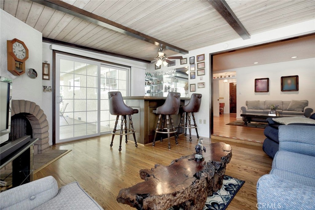 Nestled in the desirable Seven Hills neighborhood, this 1960 mid-century ranch sits on a quiet cul-de-sac and offers exceptional potential. The three-bedroom, two-bath home features an open floor plan with fireplaces in both the living and family rooms, a wet bar with refrigerator, a dedicated home office, and an eat-in kitchen. Hardwood floors, generous closet space, plantation shutters, and a spacious rear yard enhance the home’s comfort and livability. A covered patio and side yard, ideal for gardening, create inviting indoor-outdoor living opportunities. The two-car garage, complete with a workbench, reflects the care of its previous contractor-owner. A rare opportunity to update, personalize, and bring your vision to life in a prime location.