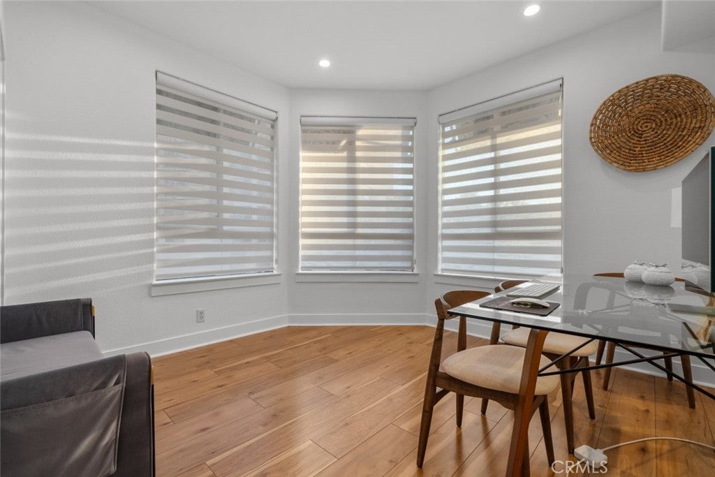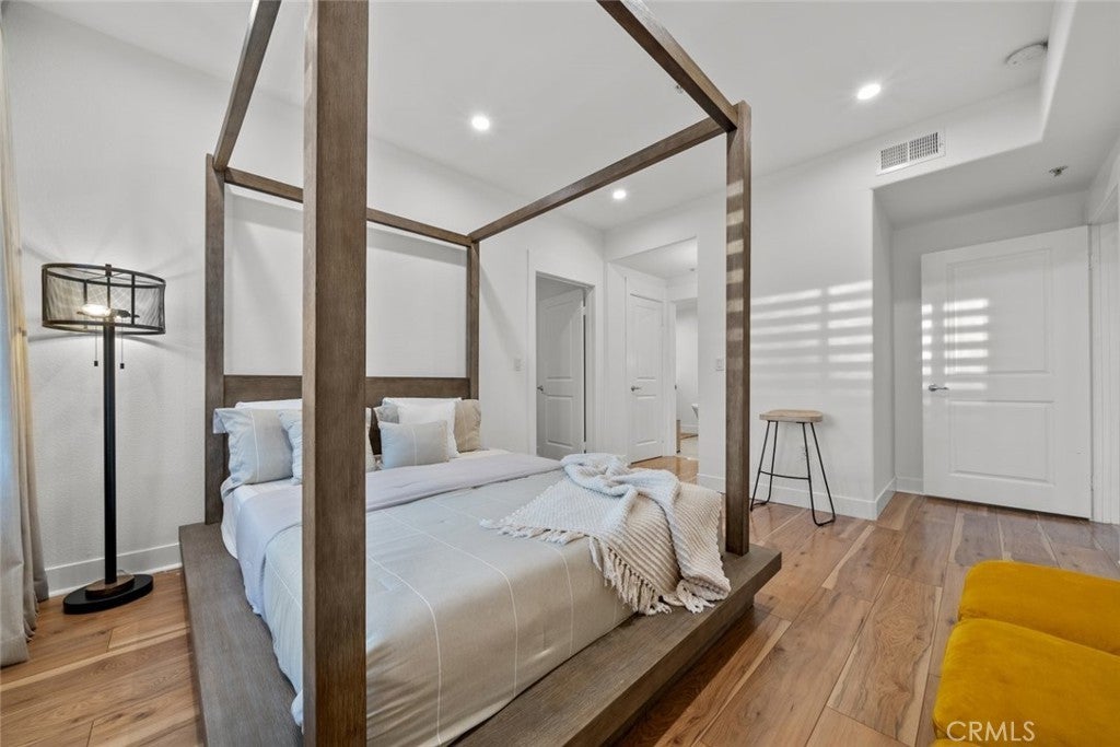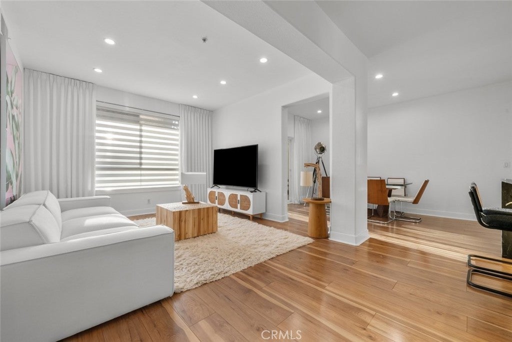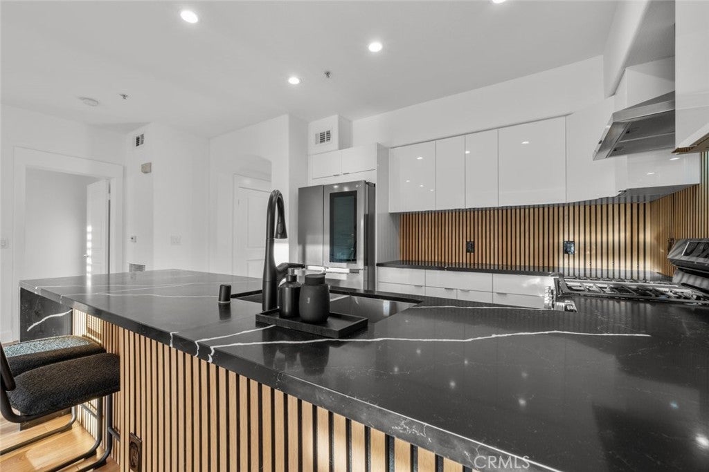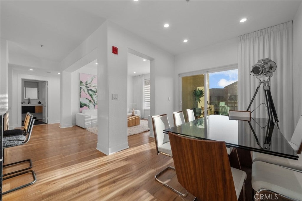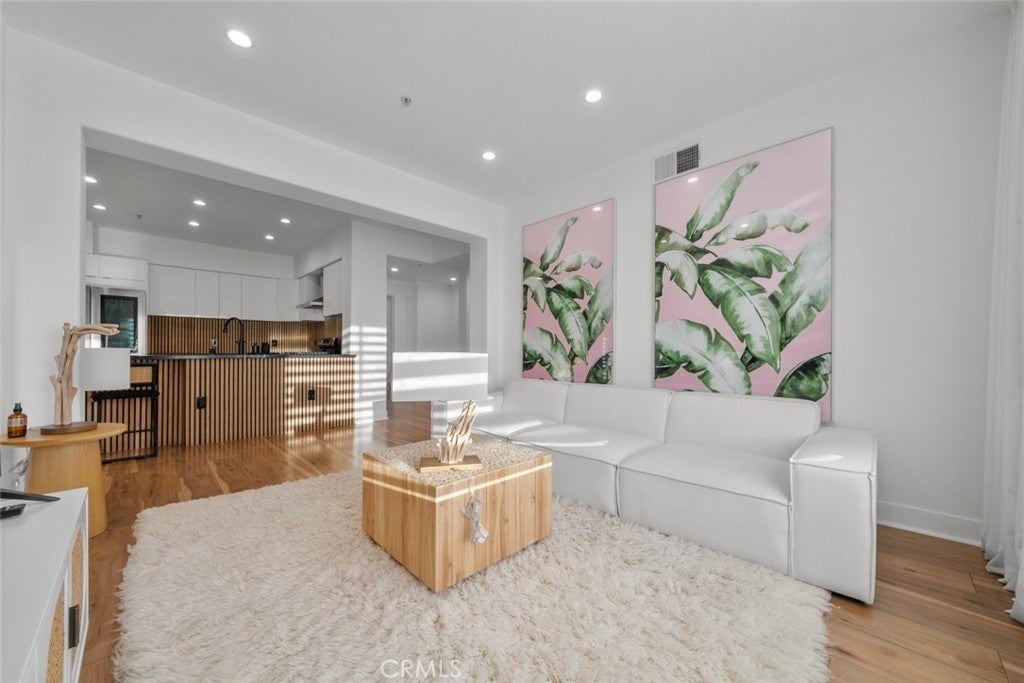 Welcome to Madison at Town Center located in the heart of Valencia. This top floor fully furnished condo offers 3 bedrooms and 2 bathrooms with approximately 1,570 square feet of living space. The open floor plan provides a bright interior with functional living and dining areas. The kitchen has been updated with quartz countertops and stainless steel appliances including a gas range, range hood, refrigerator, and microwave. The primary bedroom includes an attached bathroom with a separate bathtub, shower, dual sink vanity, and a walk in closet. Additional features include updated bathrooms, upgraded flooring, recessed lighting, and an in unit laundry closet. A private balcony off the living room provides outdoor space and neighborhood views. Community amenities include a fitness center, swimming pool, clubhouse, theater room, outdoor patio area with fireplace, and conference space. The property is located near shopping, dining, trails, and freeway access, offering convenient Valencia living.