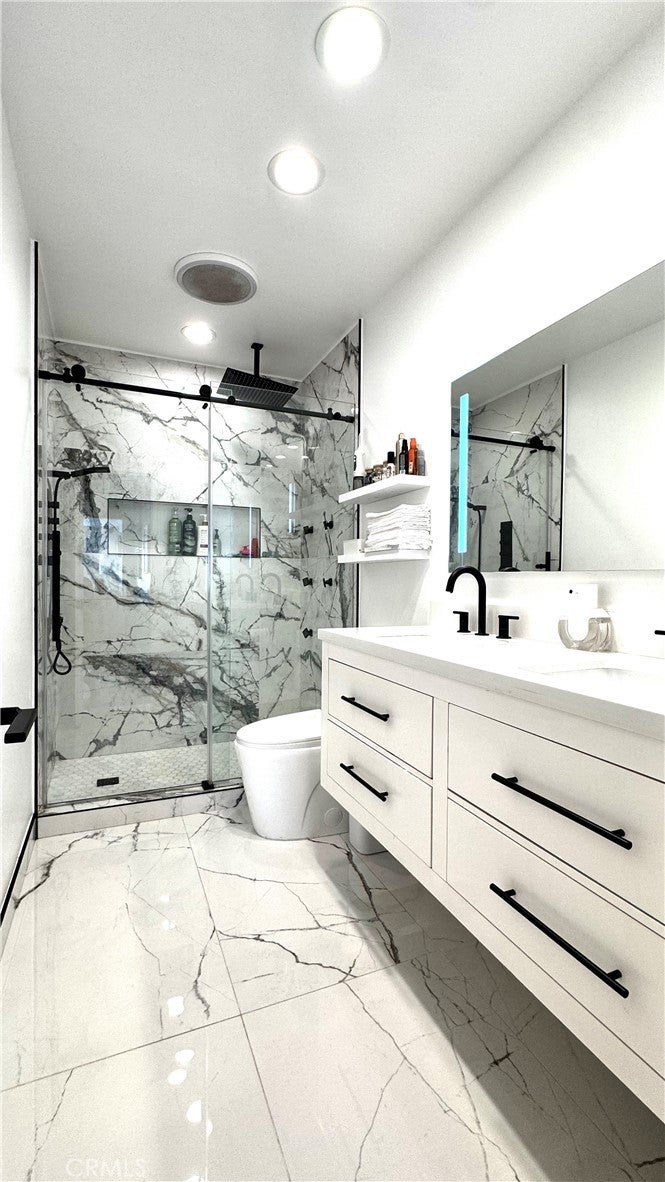 Drive up the tree lined long driveway to this very private home on the corner of a cul de sac. Driveway holds up to 6 cars. Completely open concept floor plan with everything beautifully remodeled. Master bedroom features 2 walk in closets with floor to ceiling shoe racks in both. Very large backyard with lots of space and amenities for entertaining including a beautiful closed patio, barbecue station, and bar table. Easily accessible attic with room for lots of storage along with two large storages on the property.