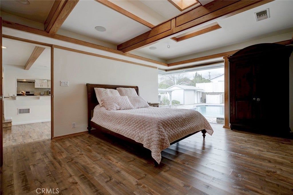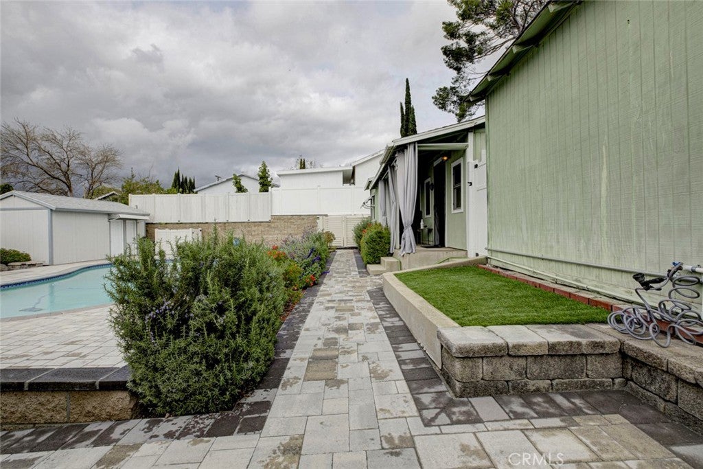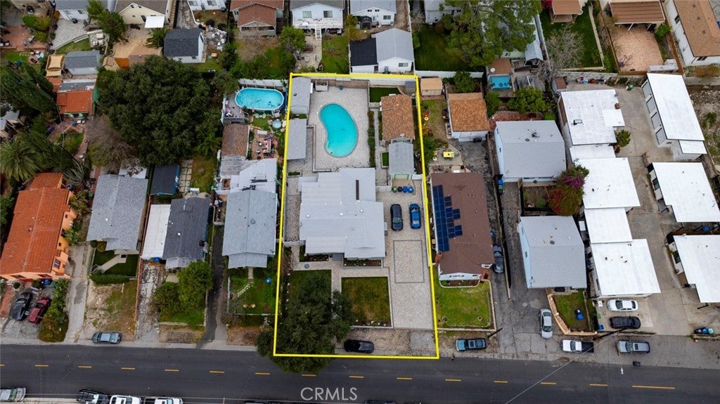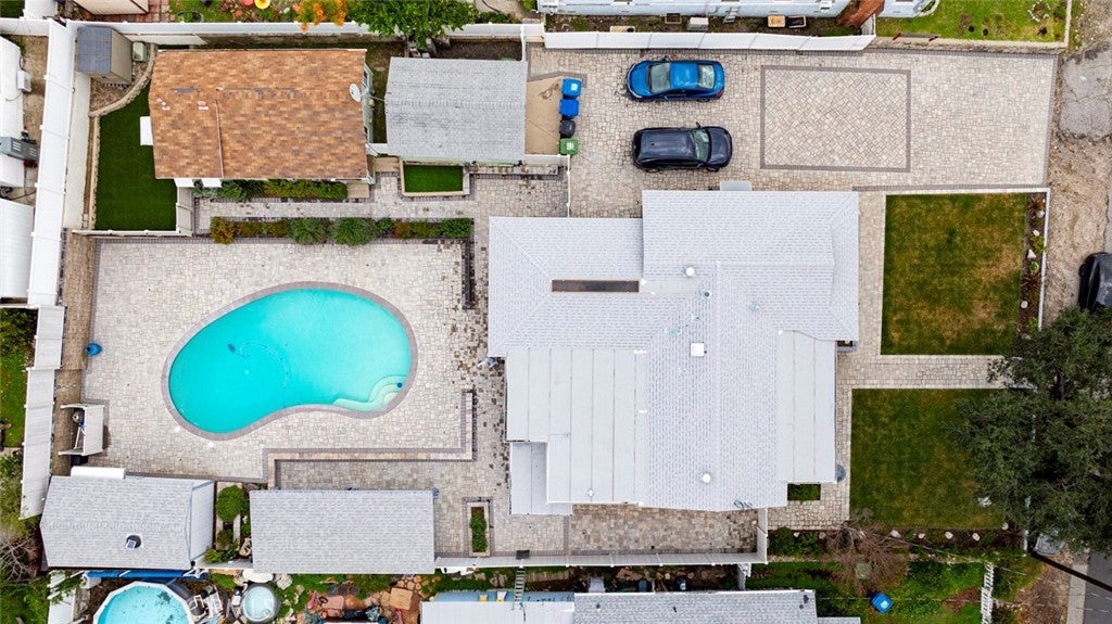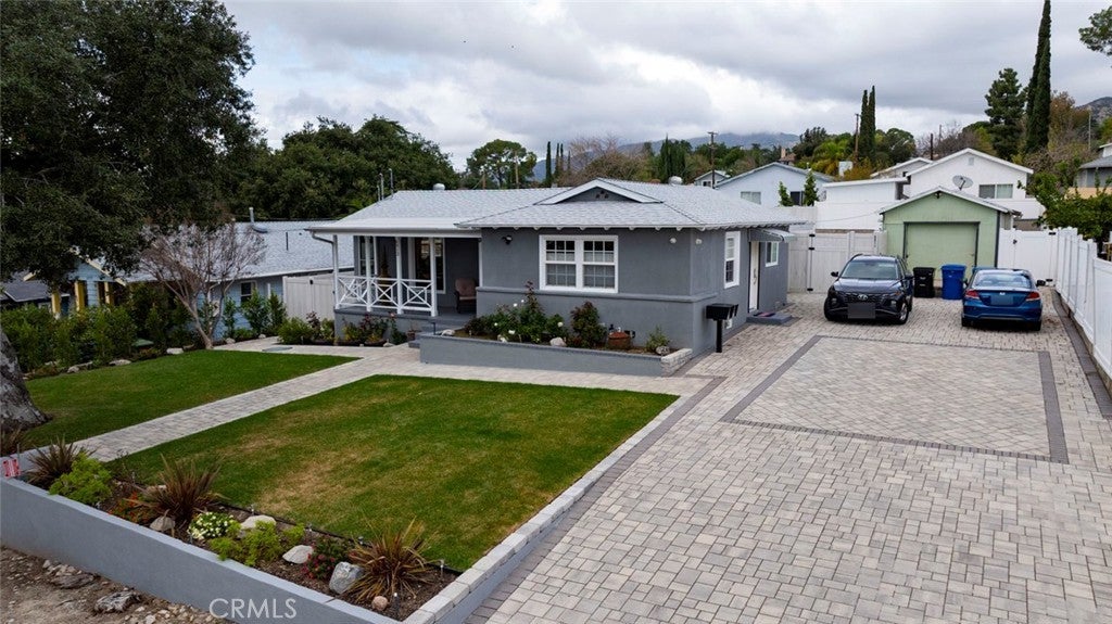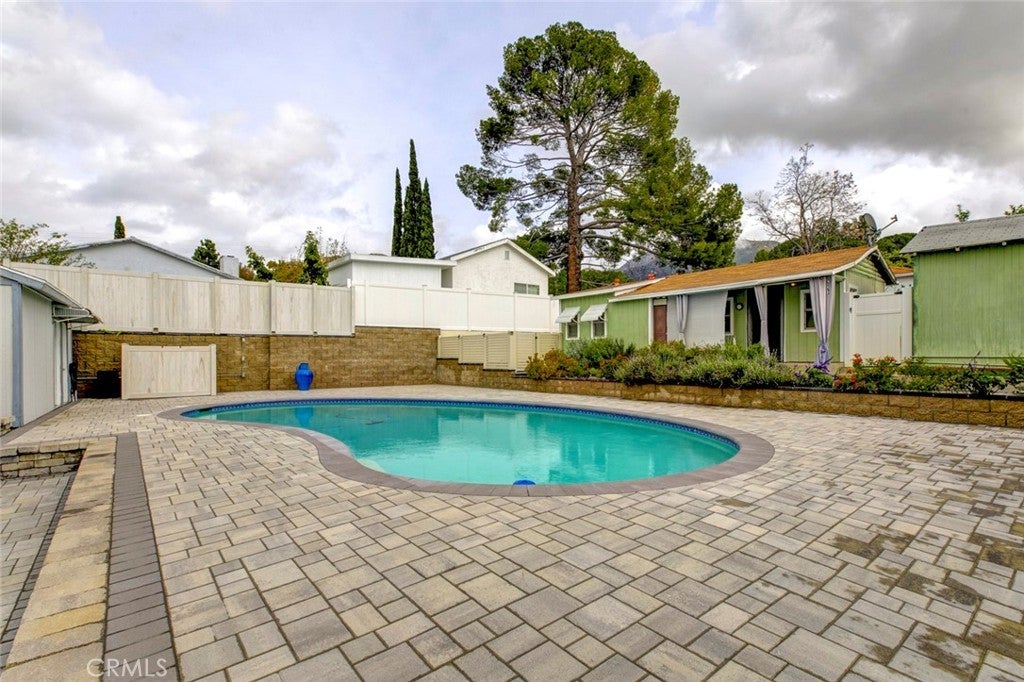 This duplex in Tujunga can be yours, offering resort-style living and income potential on an expansive 11,970 sq.ft. lot with two legal homes, a sparkling pool, and beautiful hardscaping throughout. The property also features a detached garage with potential for an ADU conversion, adding even more value and flexibility for future expansion. The front home features 3 bedrooms and 2 baths, while the rear home offers 1 bedroom and 1 bath, each with its own address and utilities—perfect for multi-generational living, rental income, or guest accommodations. The main residence showcases warm wood-style floors, recessed lighting, and an inviting living room with large picture windows that frame serene outdoor views, flowing into an updated kitchen with white shaker cabinets, granite counters, subway tile backsplash, and stainless steel appliances. A stunning primary suite highlights rich wood beam details, expansive floor-to-ceiling windows overlooking the pool, and direct access to the backyard for a true indoor-outdoor retreat, while additional bedrooms and remodeled baths with modern vanities and glass-enclosed showers provide comfort and style for family or guests. Outside, the property transforms into an entertainer’s paradise with an oversized paver patio, a generously sized pool, and a covered outdoor lounge complete with ceiling fan, heaters, and space for TV and seating ideal for gatherings day or night. Ample driveway parking and manicured landscaping complete this rare opportunity in a highly desirable Tujunga neighborhood.