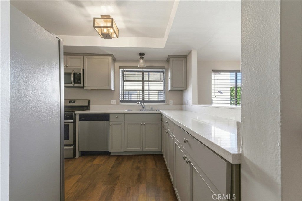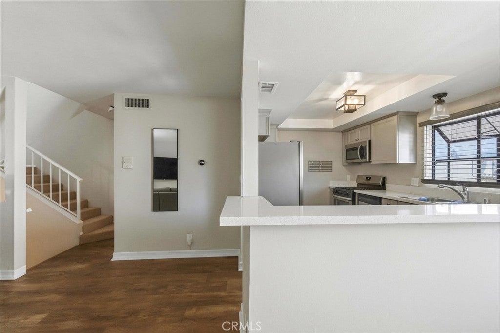 Beautifully upgraded 2-bedroom, 2.5-bath townhouse-style condo with direct garage access. Offering nearly 1,100 sq ft of thoughtfully designed living space, this home features upgraded cabinetry, sleek quartz countertops, and stainless steel appliances in the modern kitchen. A combination of laminate and carpet flooring adds warmth and style, while the spacious bedrooms provide comfortable retreats ideal for everyday living. Located in an intimate 17-unit complex, this property combines comfort and convenience with easy access to freeways, shopping, dining, and everything you need just minutes away.
