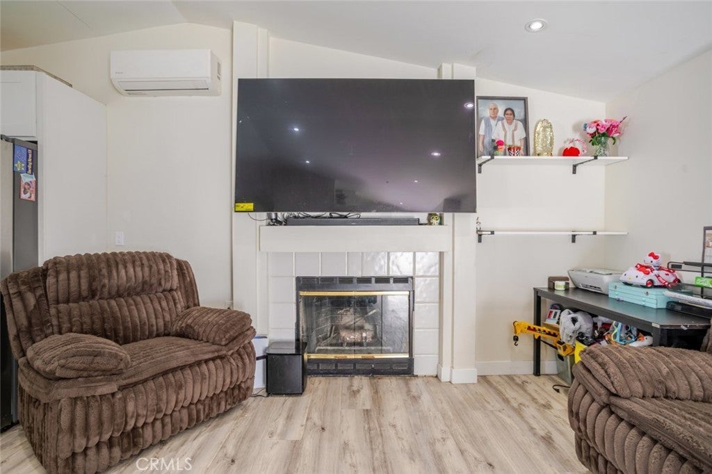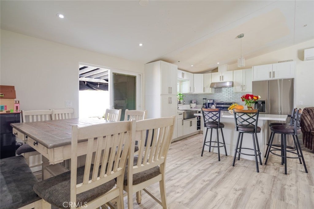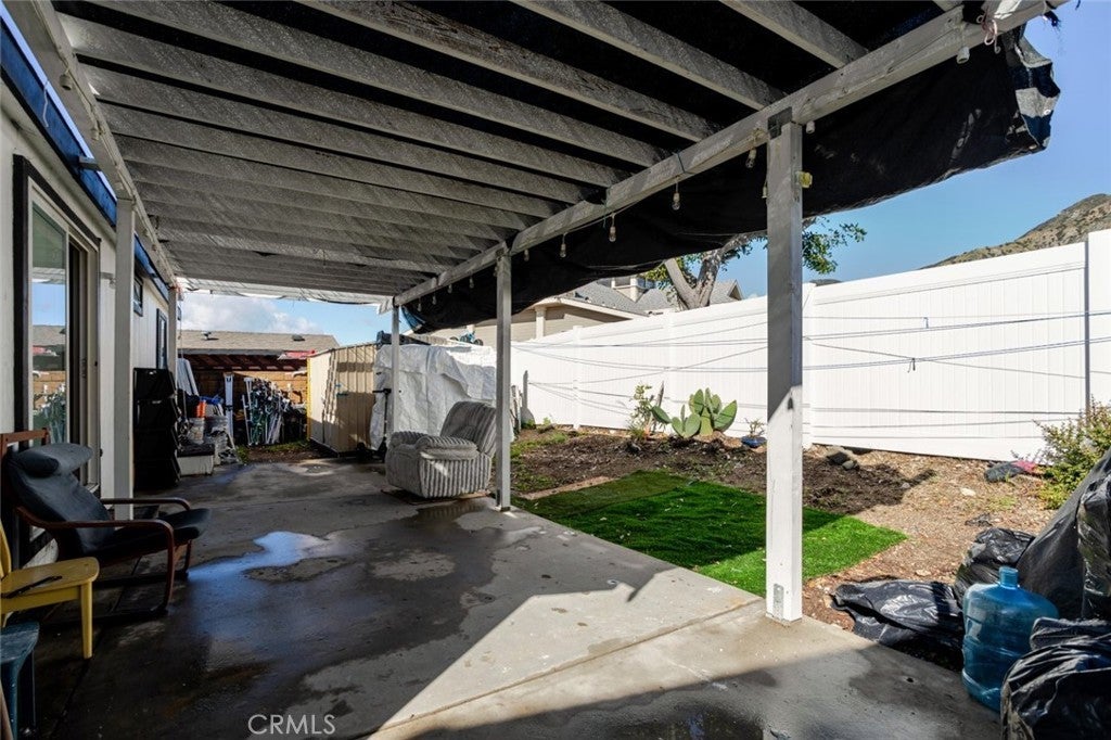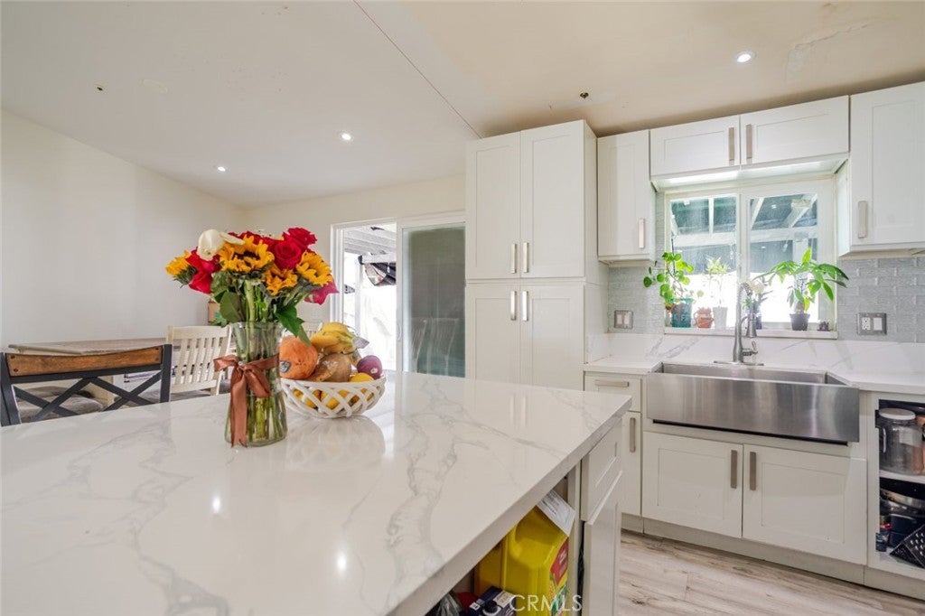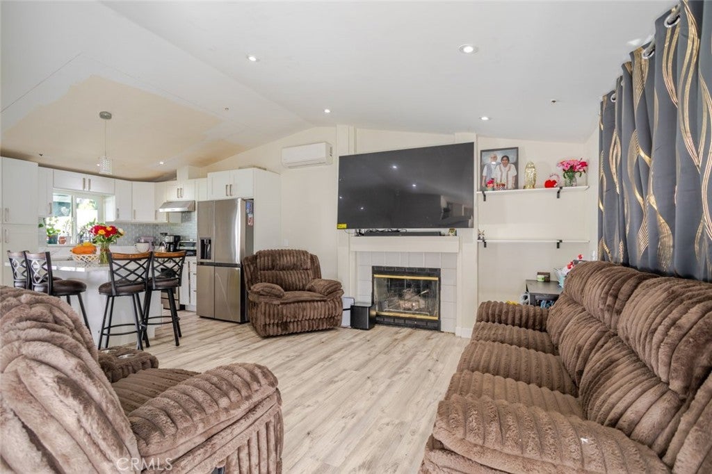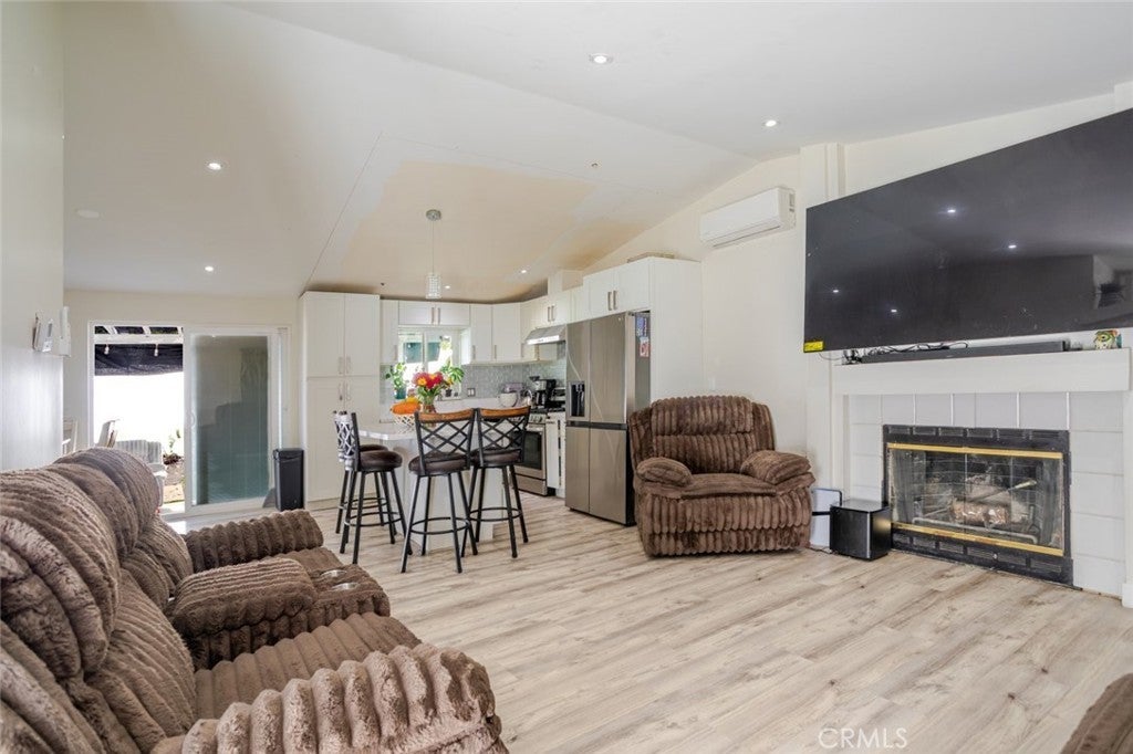 Welcome to this beautifully maintained 2 bedroom, 2 bathroom manufactured home located in Santiago Estates Community. This home features a bright open floor plan with updated finishes throughout and solar for added energy efficiency. The spacious living room flows seamlessly into the dining area and renovated kitchen, complete with white cabinetry, quartz style countertops, stainless steel appliances, and a large center island with seating. Recessed lighting and updated flooring enhance the modern feel of the home. Both bedrooms are generously sized, including a primary suite with its own private bathroom. The bathrooms have been refreshed with contemporary vanities and stylish fixtures, creating a clean and inviting atmosphere. A covered patio extends the living space and opens to a private backyard, ideal for outdoor gatherings, gardening, or relaxing. The property also offers a spacious driveway providing ample parking and convenience. The yard adds flexibility and privacy rarely found in similar homes. Conveniently located near shopping, dining, parks, and easy freeway access, this home blends comfort, functionality, and location. The community offers a gated pool, jacuzzi, private parks, and 24 hour security.